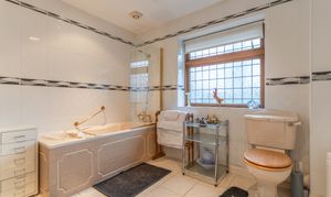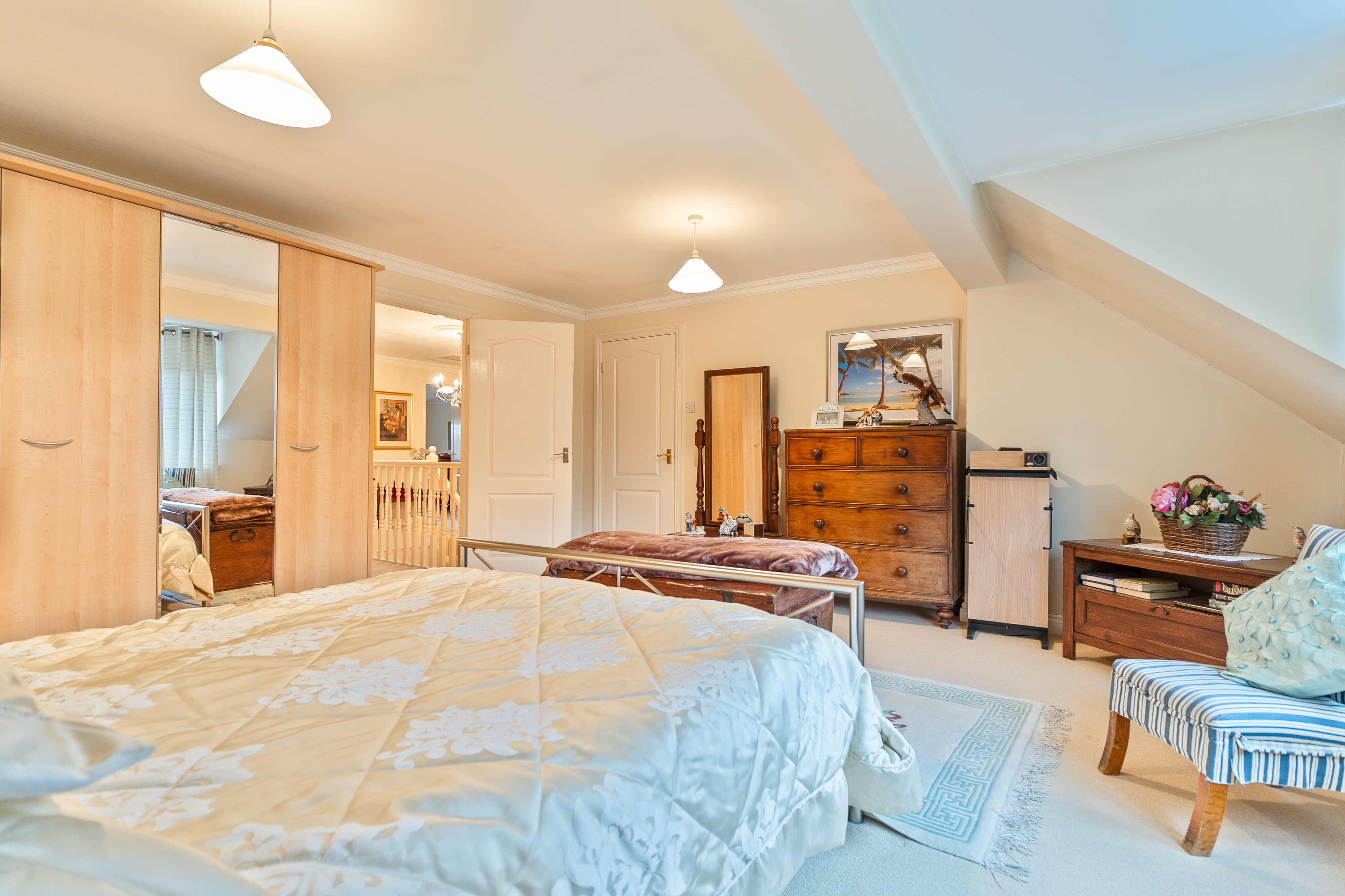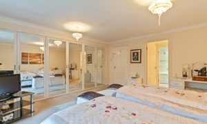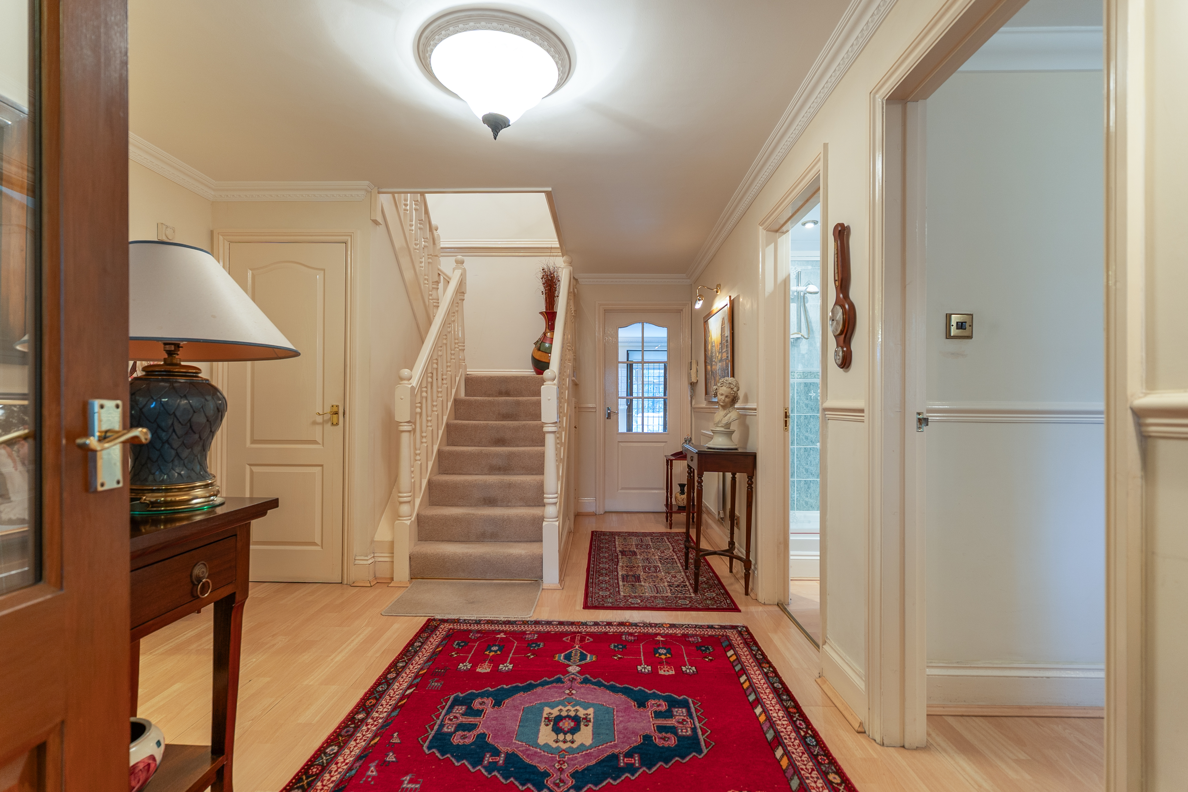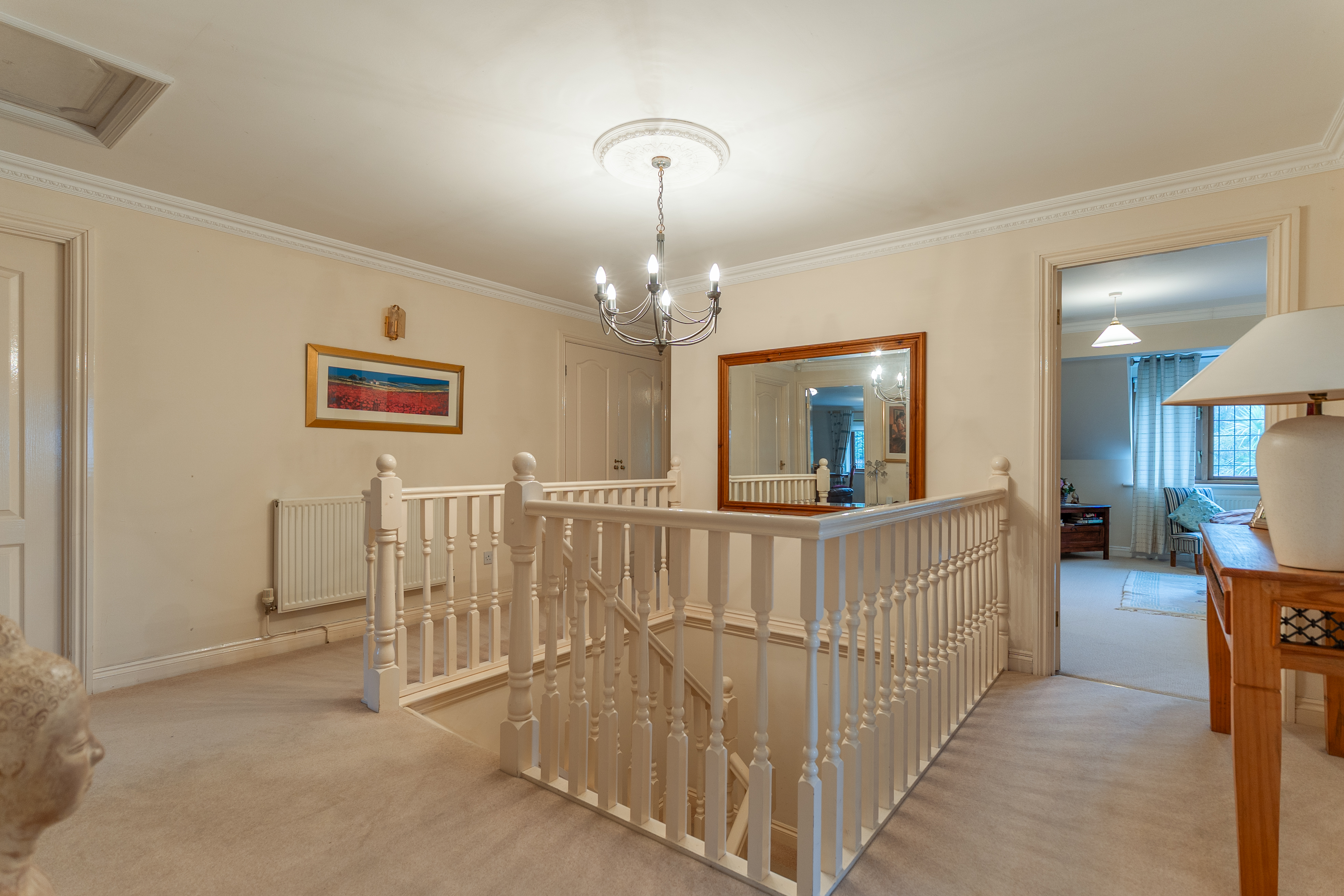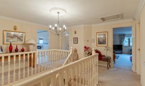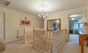 The first floor features a grand landing leading to four generously sized double bedrooms, all offering excellent proportions and flexibility for family living. The primary bedroom further benefits from its own dressing area and a well-appointed en-suite bathroom. The remaining bedrooms are served by a spacious family bathroom.