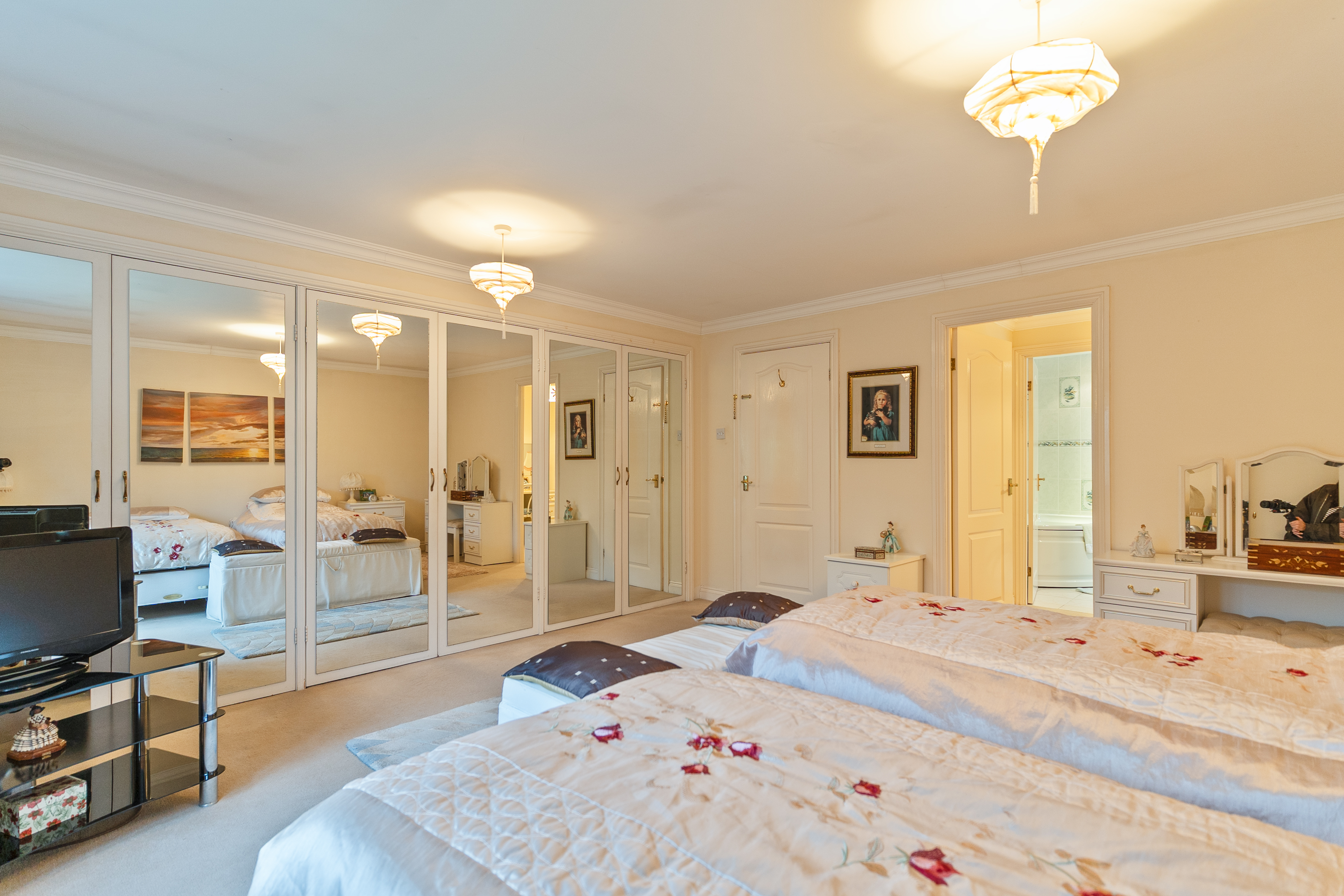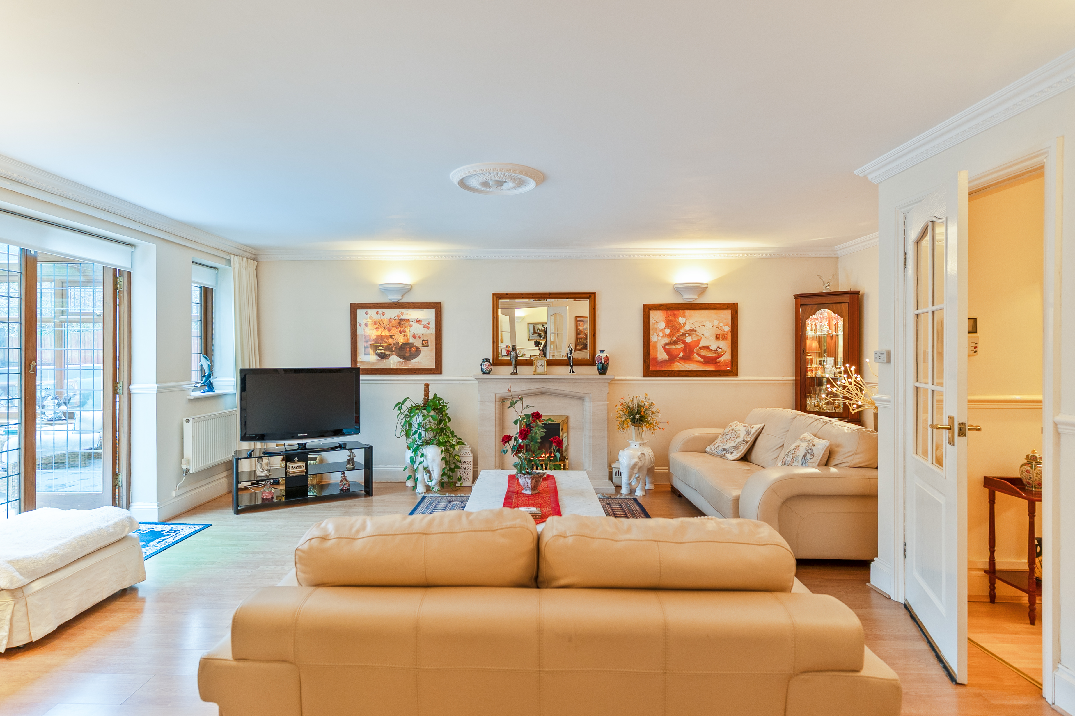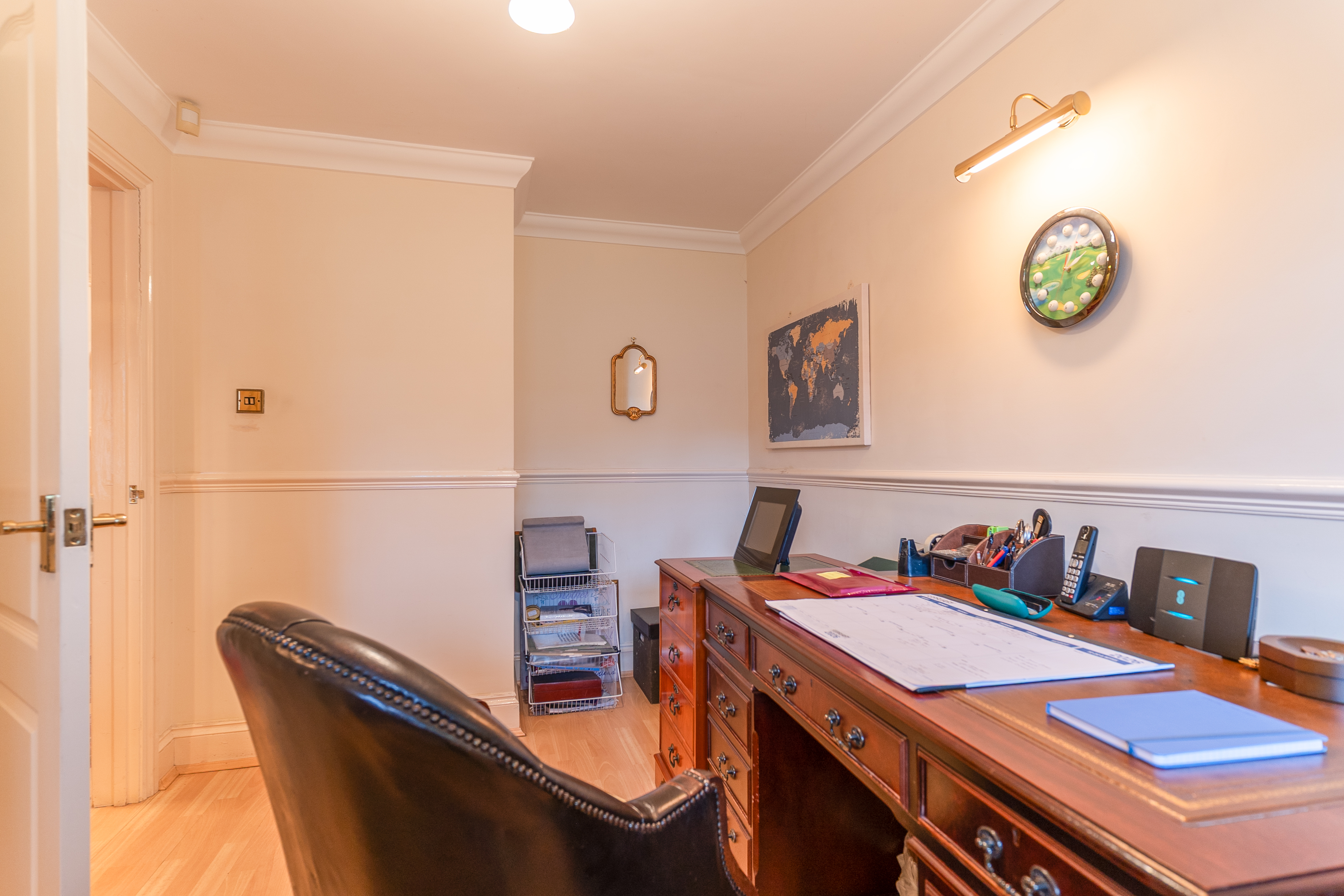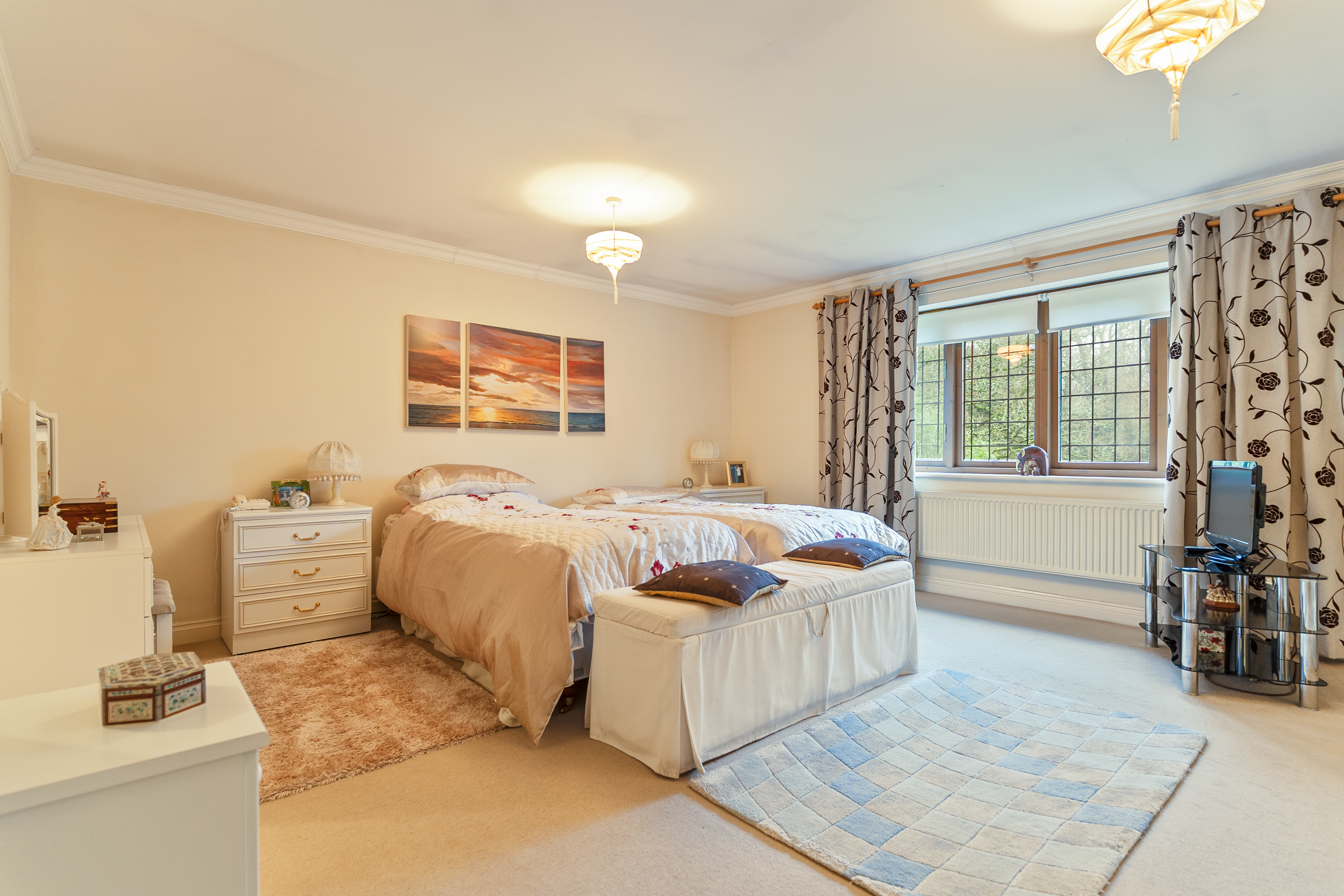 The first floor features a grand landing leading to four generously sized double bedrooms, all offering excellent proportions and flexibility for family living. The primary bedroom further benefits from its own dressing area and a well-appointed en-suite bathroom. The remaining bedrooms are served by a spacious family bathroom.