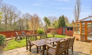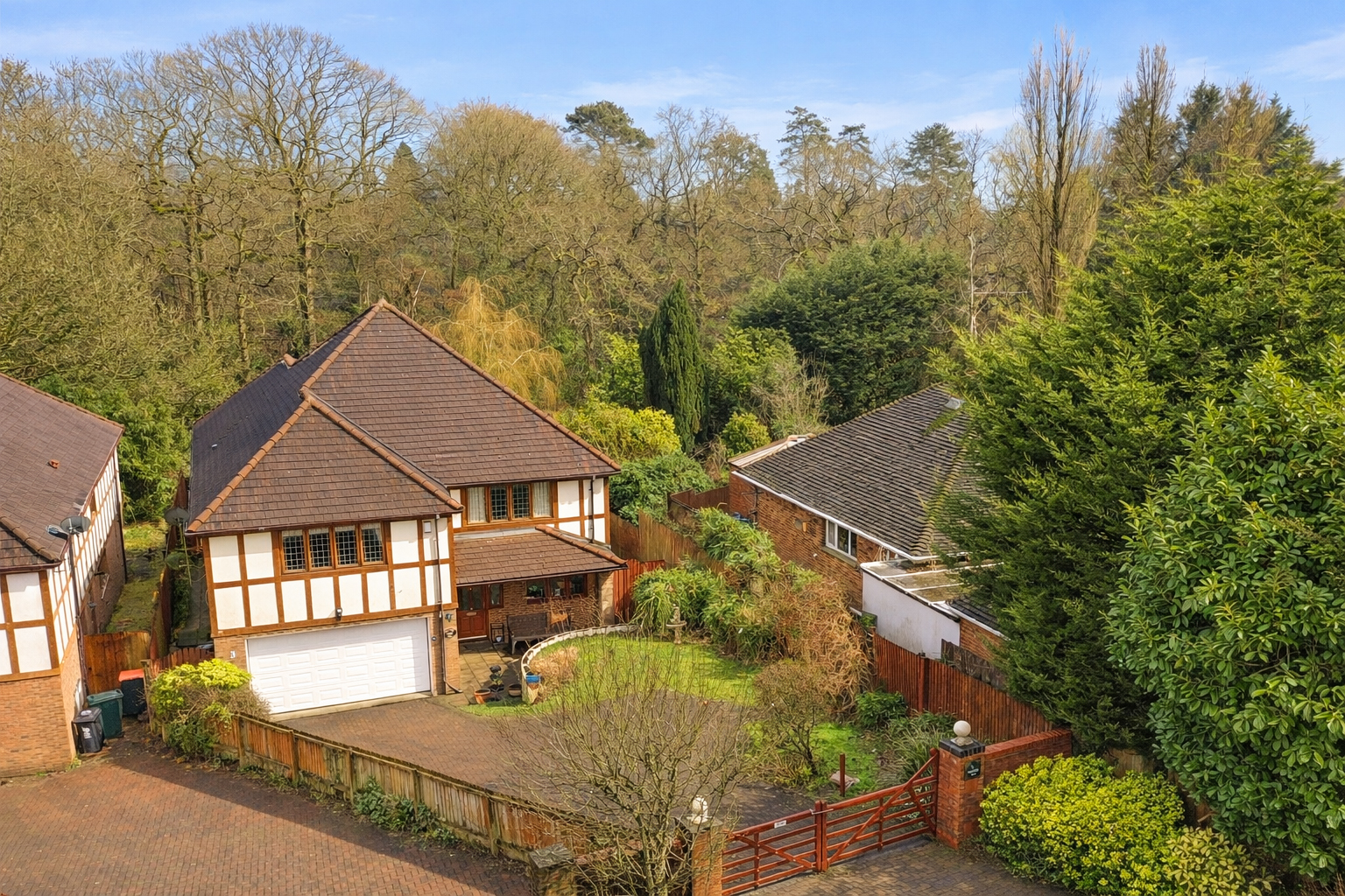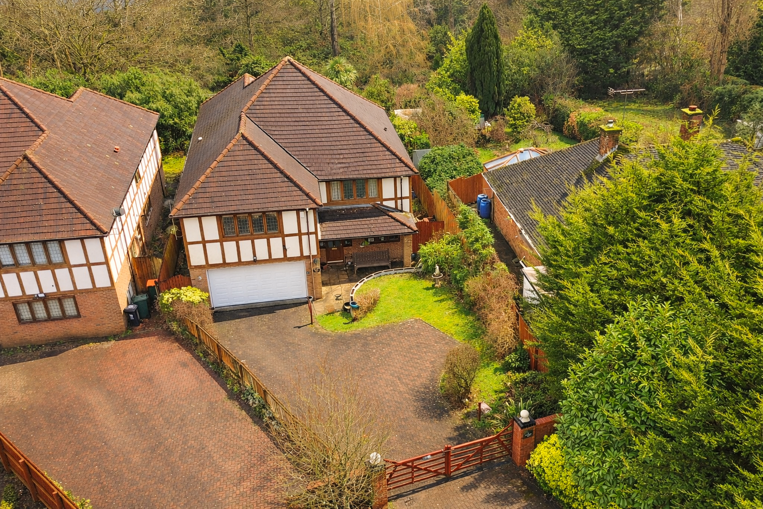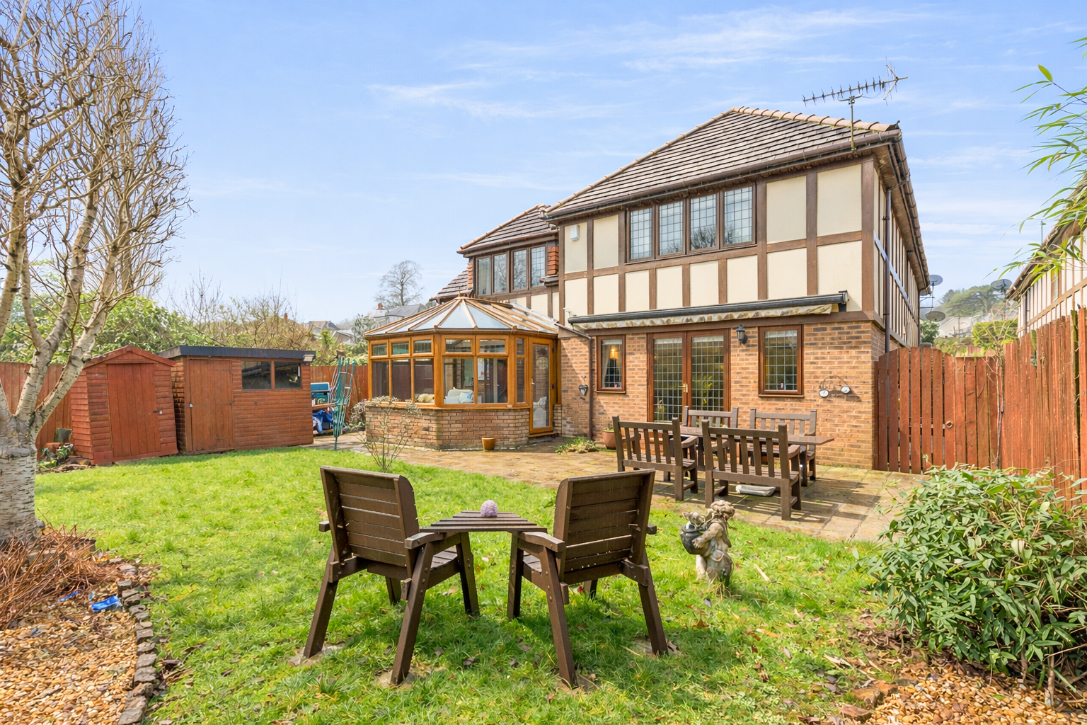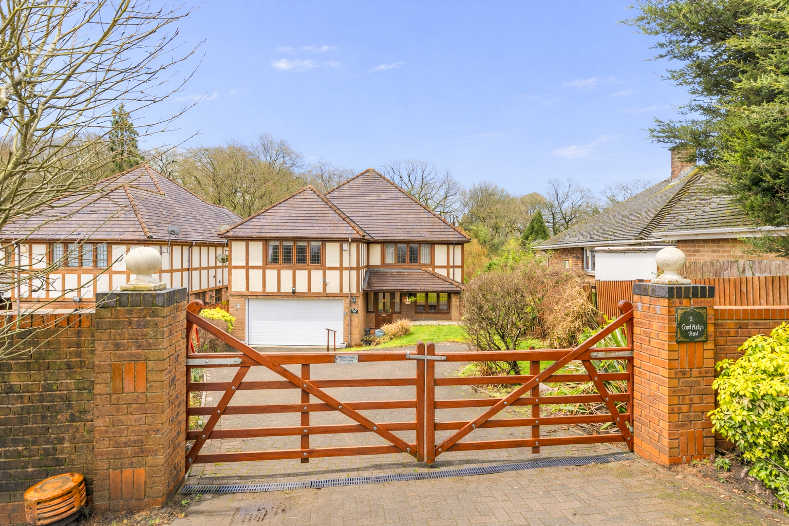Externally, the property is set back from the road behind a gated driveway, providing secure off-road parking and enhancing privacy. The enclosed garden offers a private outdoor retreat, ideal for family enjoyment, entertaining or relaxing in a peaceful setting.