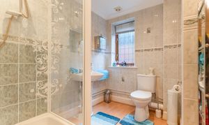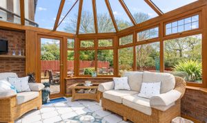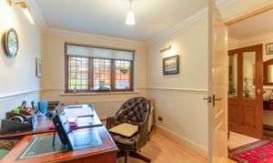 You enter the property via an initial porch area, which opens into a welcoming main hallway providing access to all ground-floor rooms and the staircase to the first floor. Along the right-hand side is a dedicated home office, ideal for remote working, alongside a useful ground-floor shower room. Directly ahead is the impressive main living room, a spacious and elegant space featuring a focal-point fireplace and access through to both the conservatory and the kitchen/diner. The conservatory offers additional reception space with views over the garden, while the kitchen/diner forms the heart of the home. This open-plan family room boasts a large fitted kitchen with ample storage and worktop space, together with generous room for seating and dining. From the kitchen, there is access to a practical utility room and direct internal access to the integral garage.