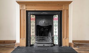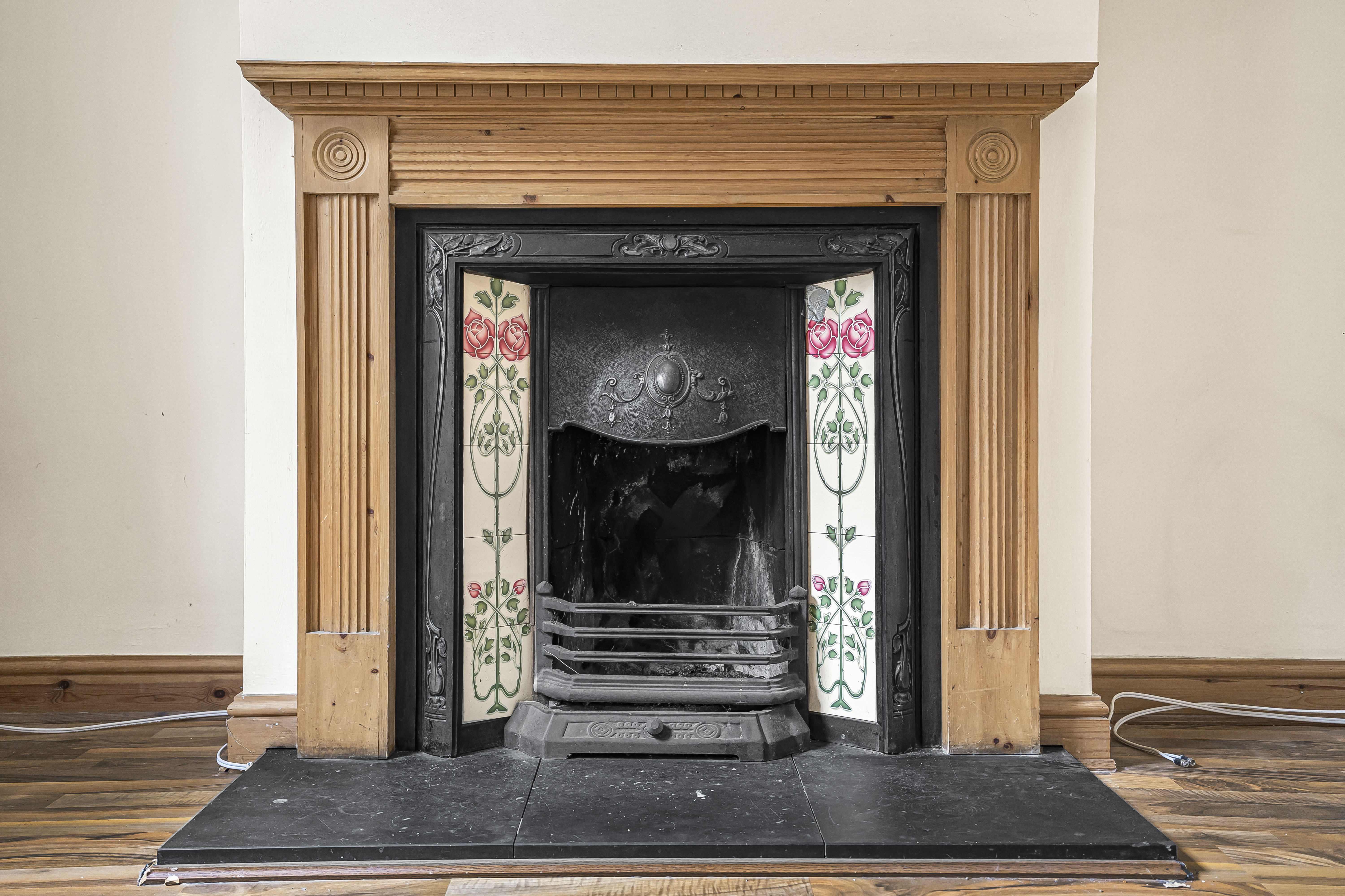 A second large reception room with useful storage under the stairs and a feature fireplace with decorative surround. A sash style window overlooks the rear courtyard.
