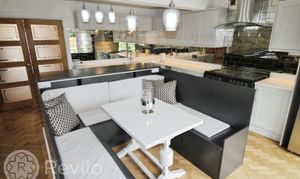 Radiator, Rear Facing Double Glazed Window, Double UPVC Doors allowing access to Rear Garden, Open Plan Dining Space with Island & Seating Area, Ceiling Spotlights.