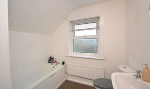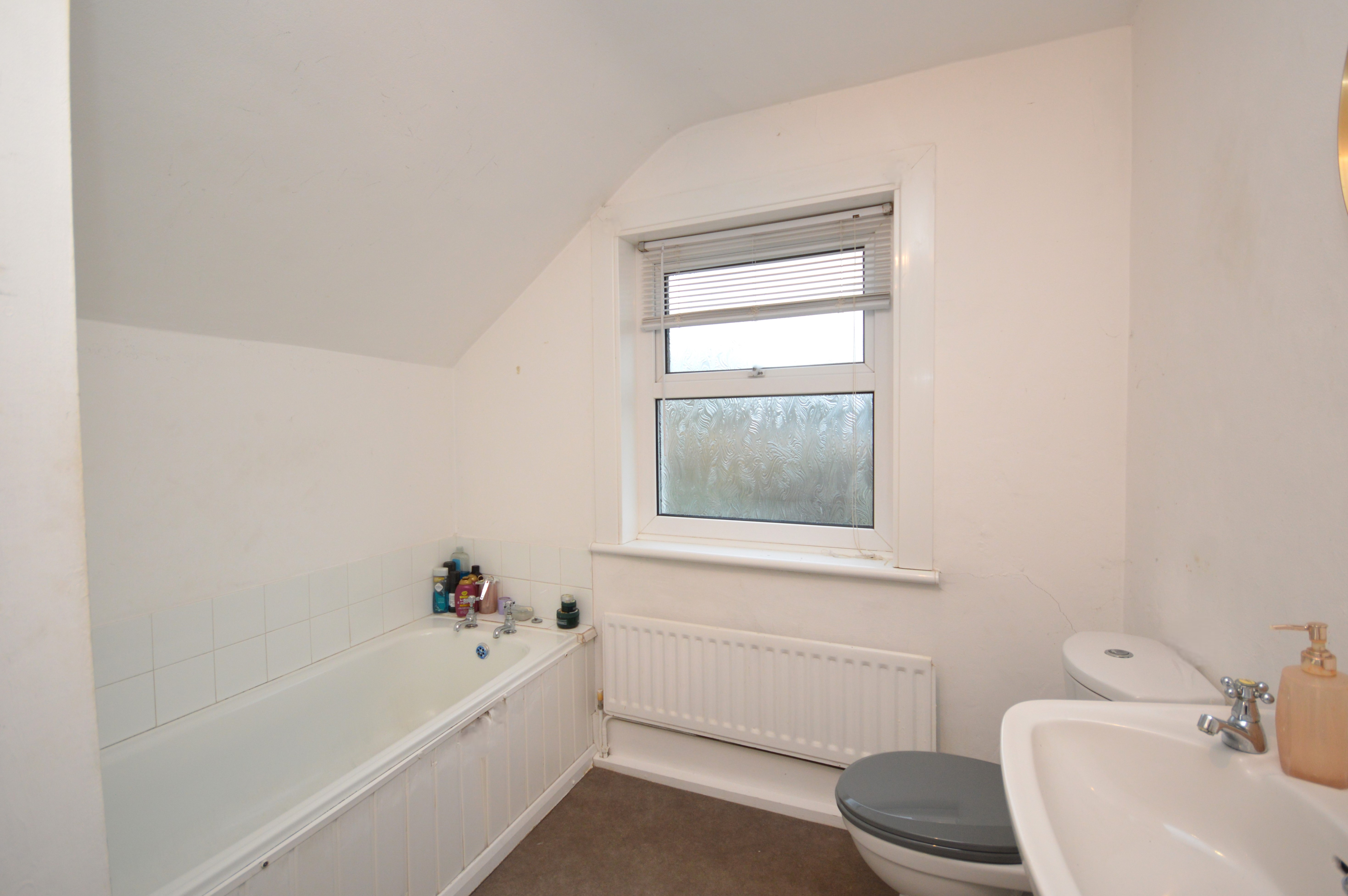 UPVC double glazed frosted window to the rear of the property. Bath with separate shower. Closed couple w/c, hand basin, radiator, vinyl flooring and a large storage cupboard.