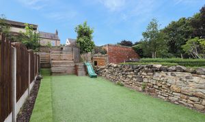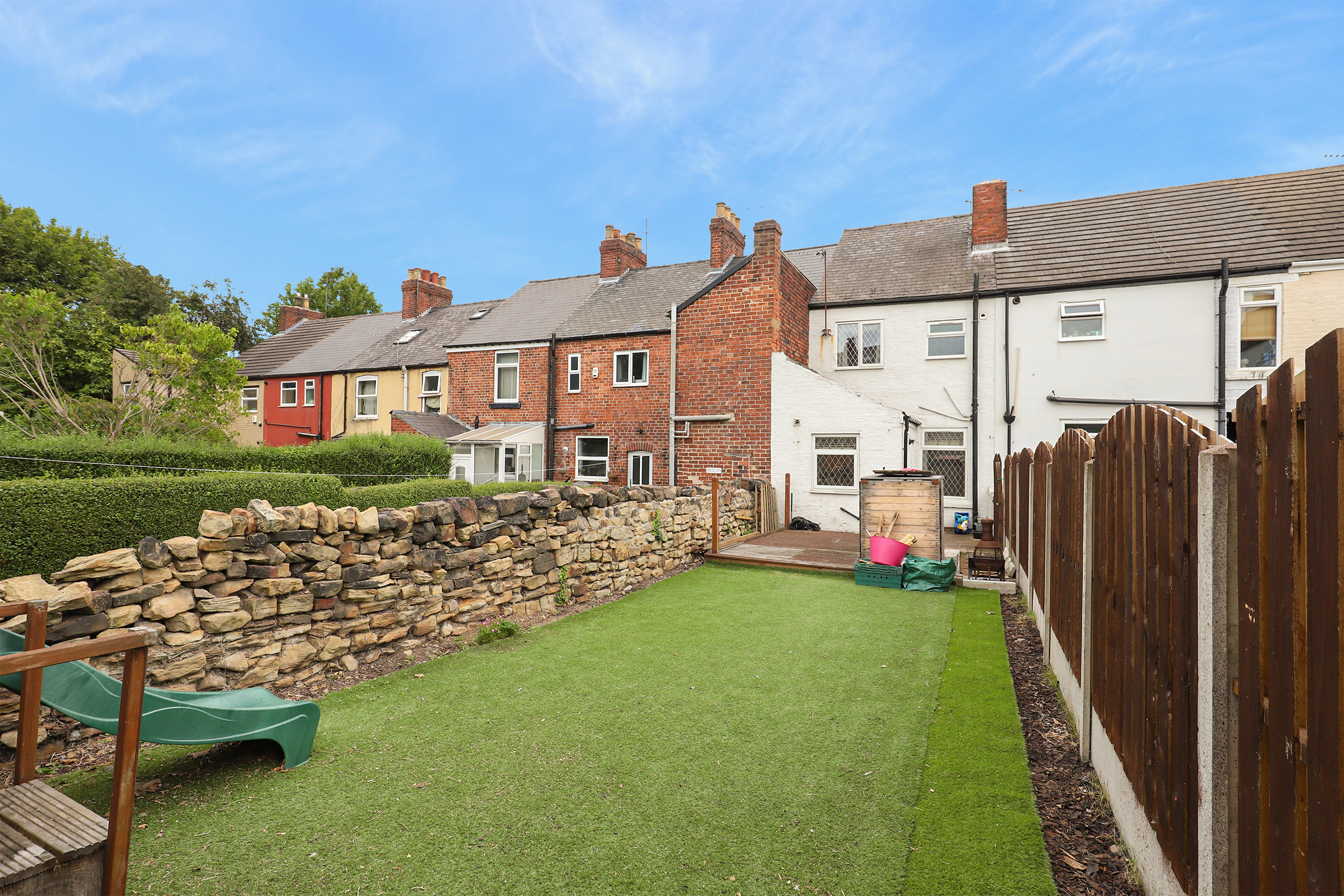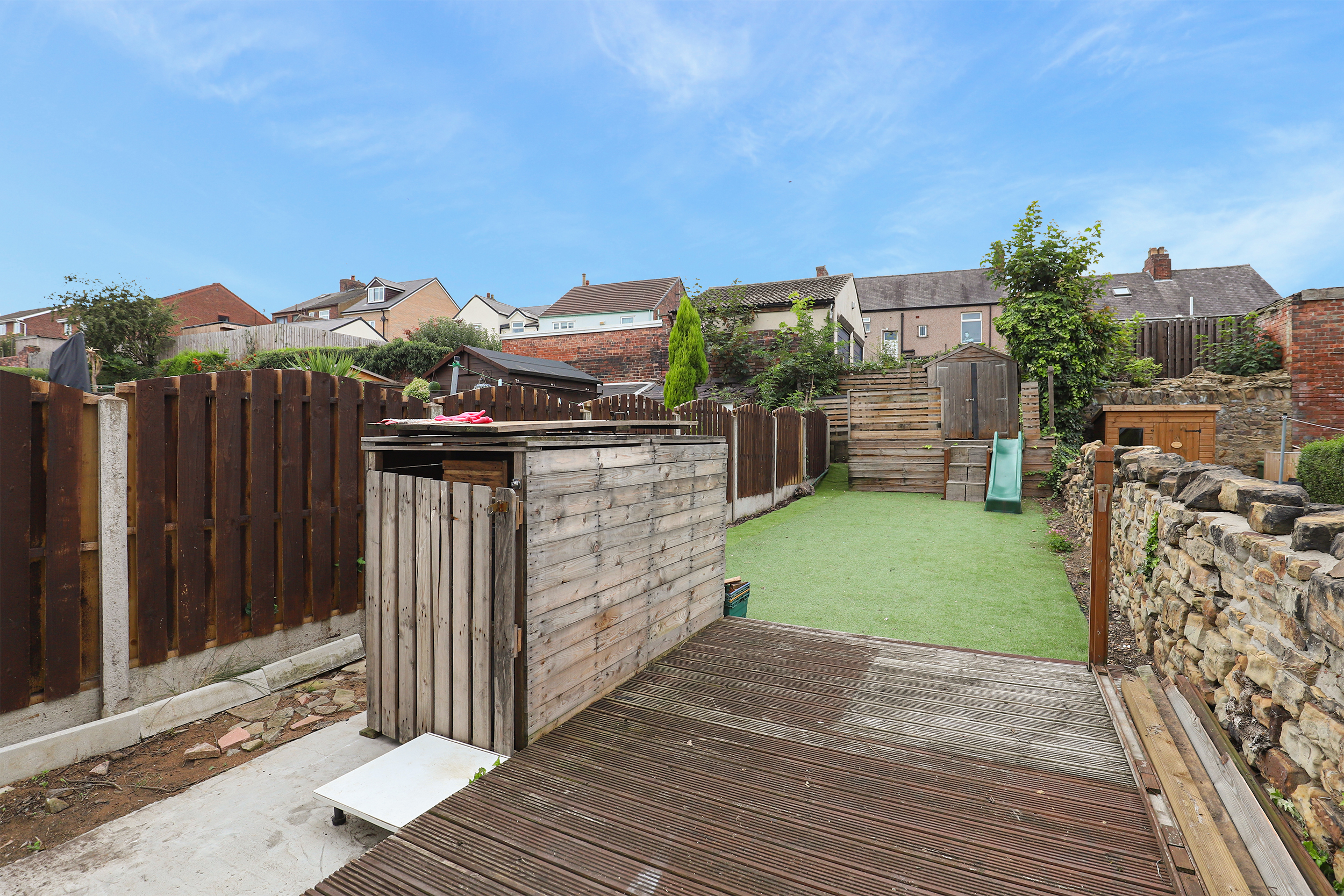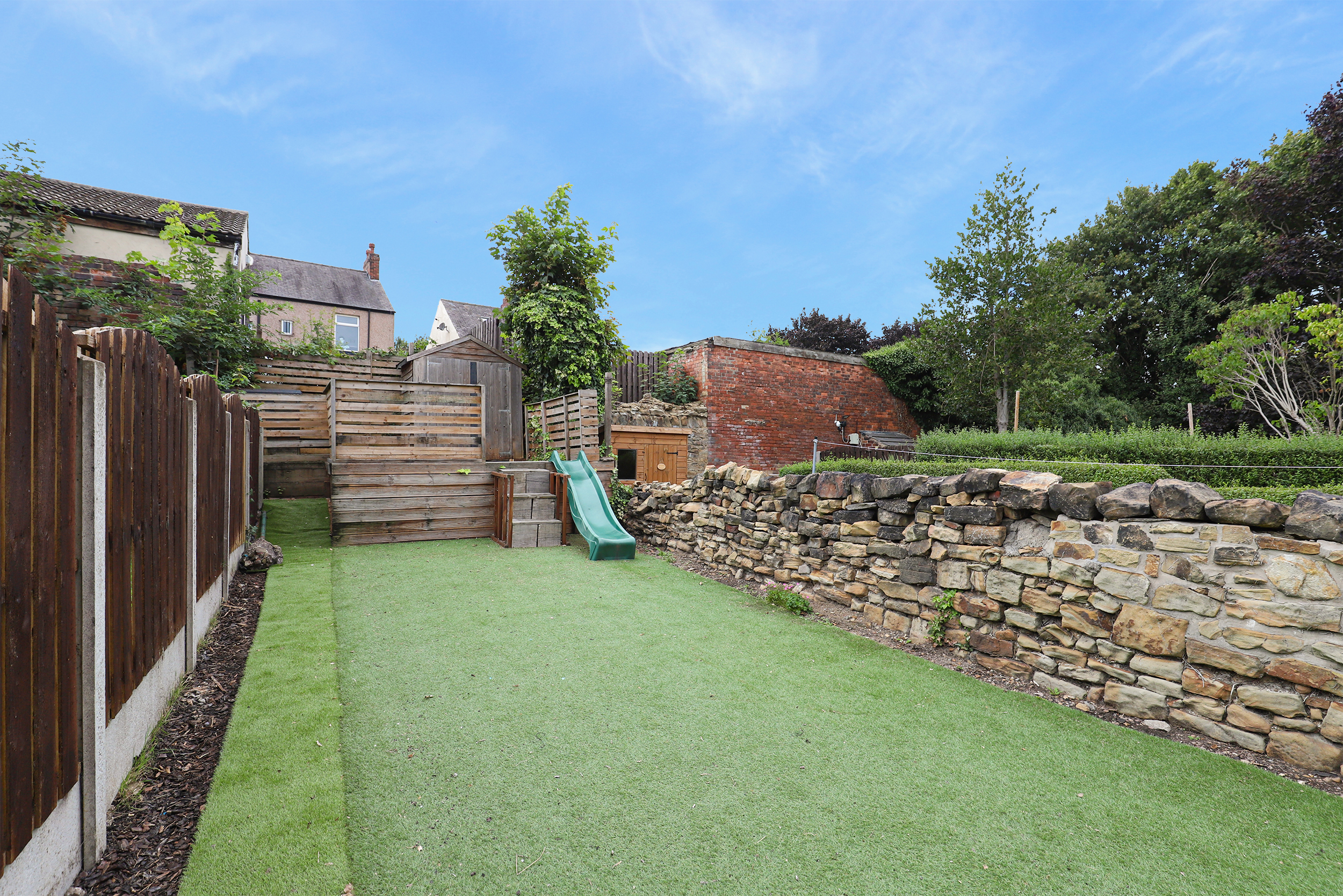 - Low Maintenance Garden With An Artificial Lawn, Play Area & A Patio Area