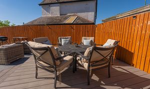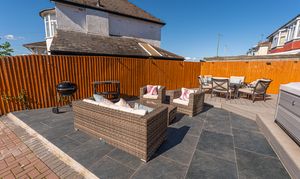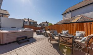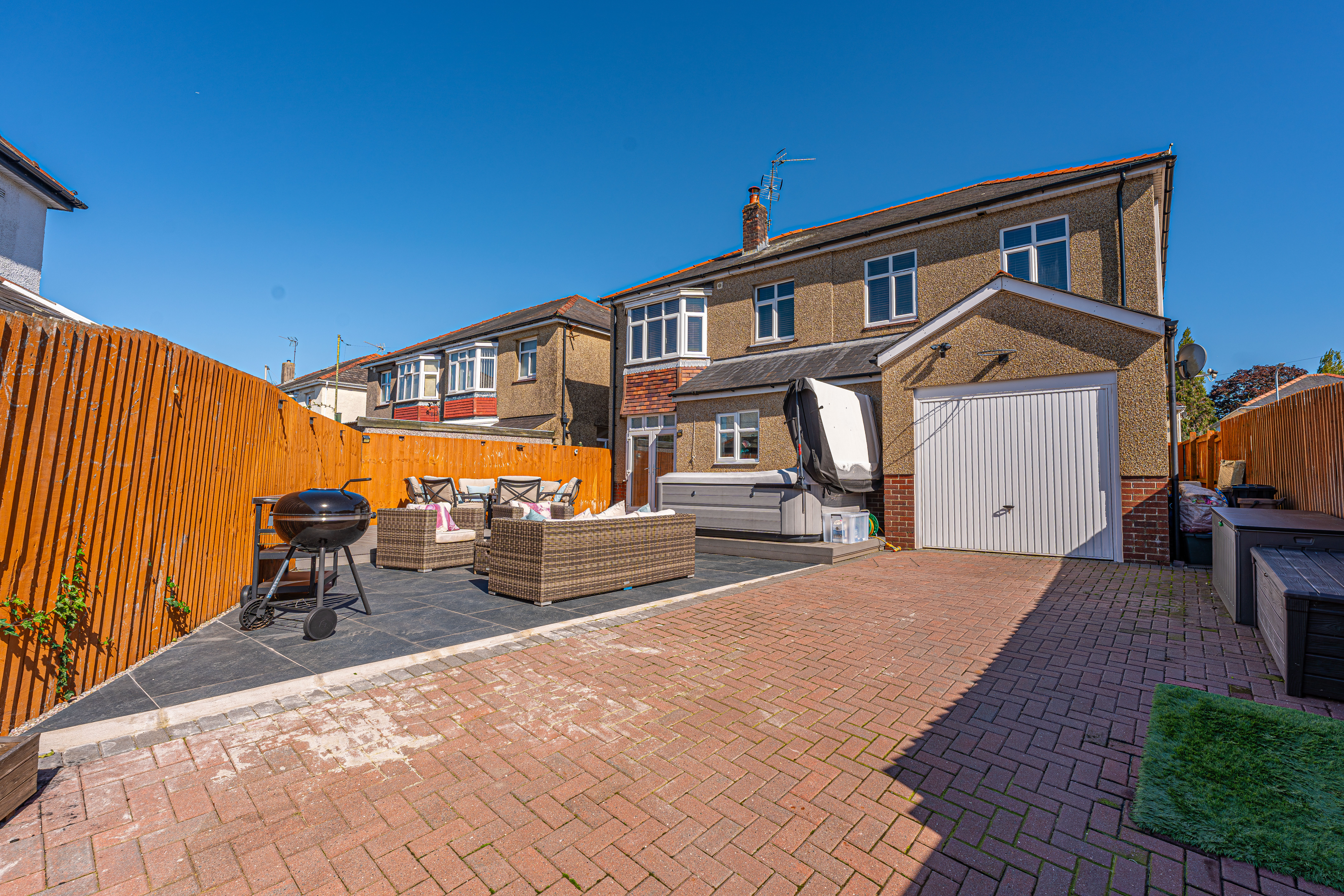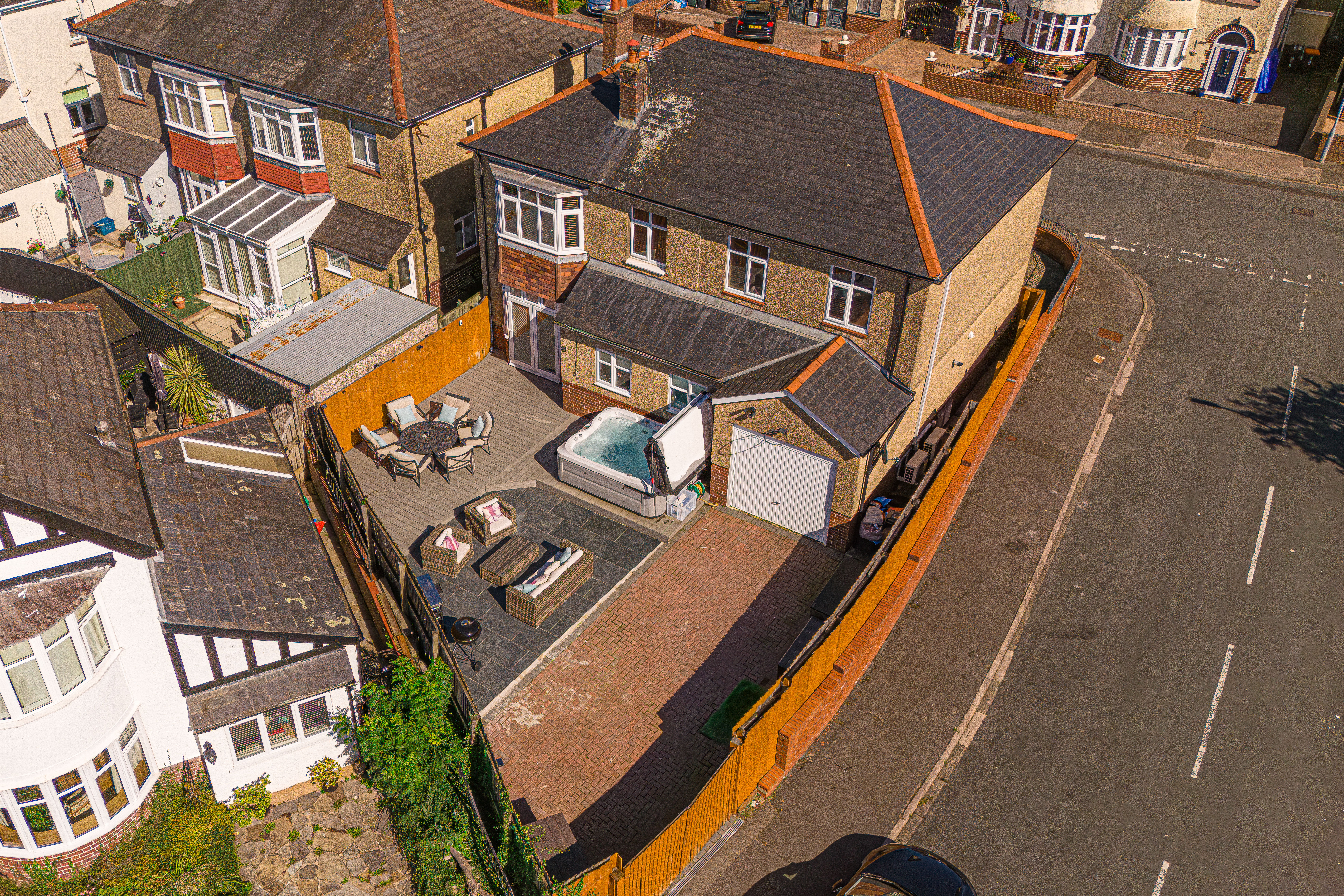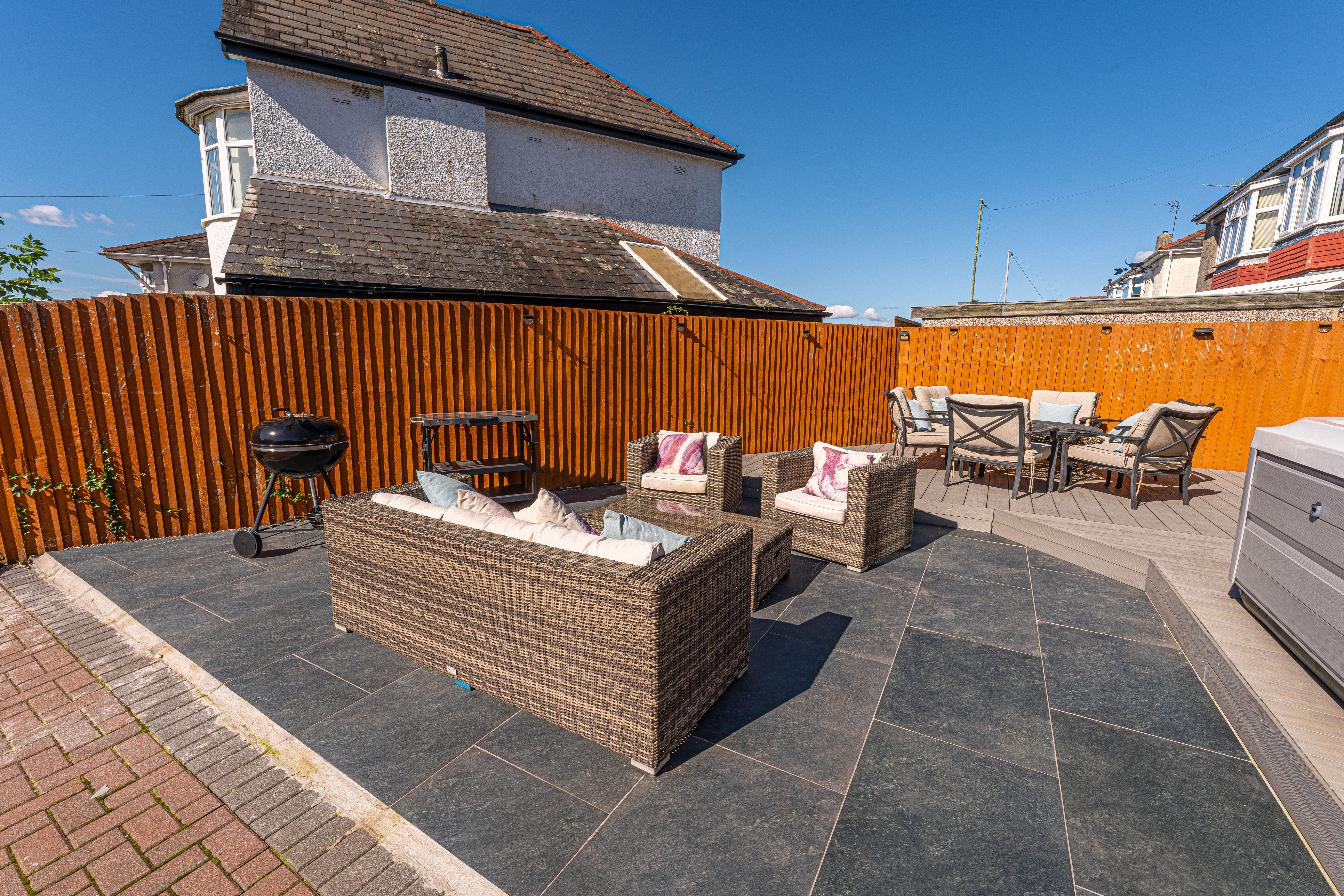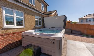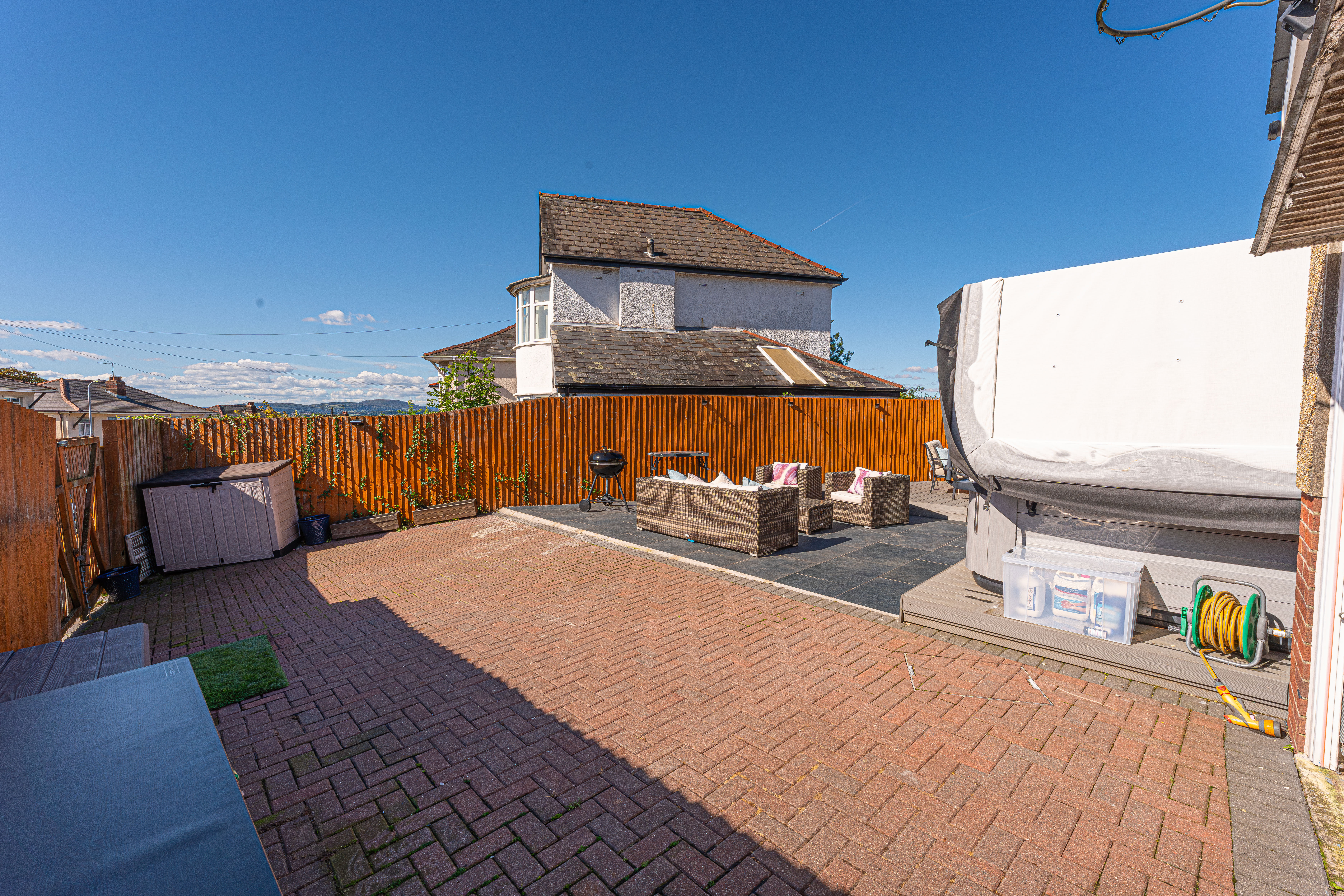 Stepping out we have the rear patio garden, fully enclosed and impressive in size, with large decking from the house perfect for entertaining guests or al-fresco dining and also featuring a large hot tub. Beyond the decking there is there is a tandem driveway leading up to the garage, with space for two vehicles to enter through the gate at the side of the house. To the front of the house there is a large pebble stone garden enclosed by a mid-height wall and gates.