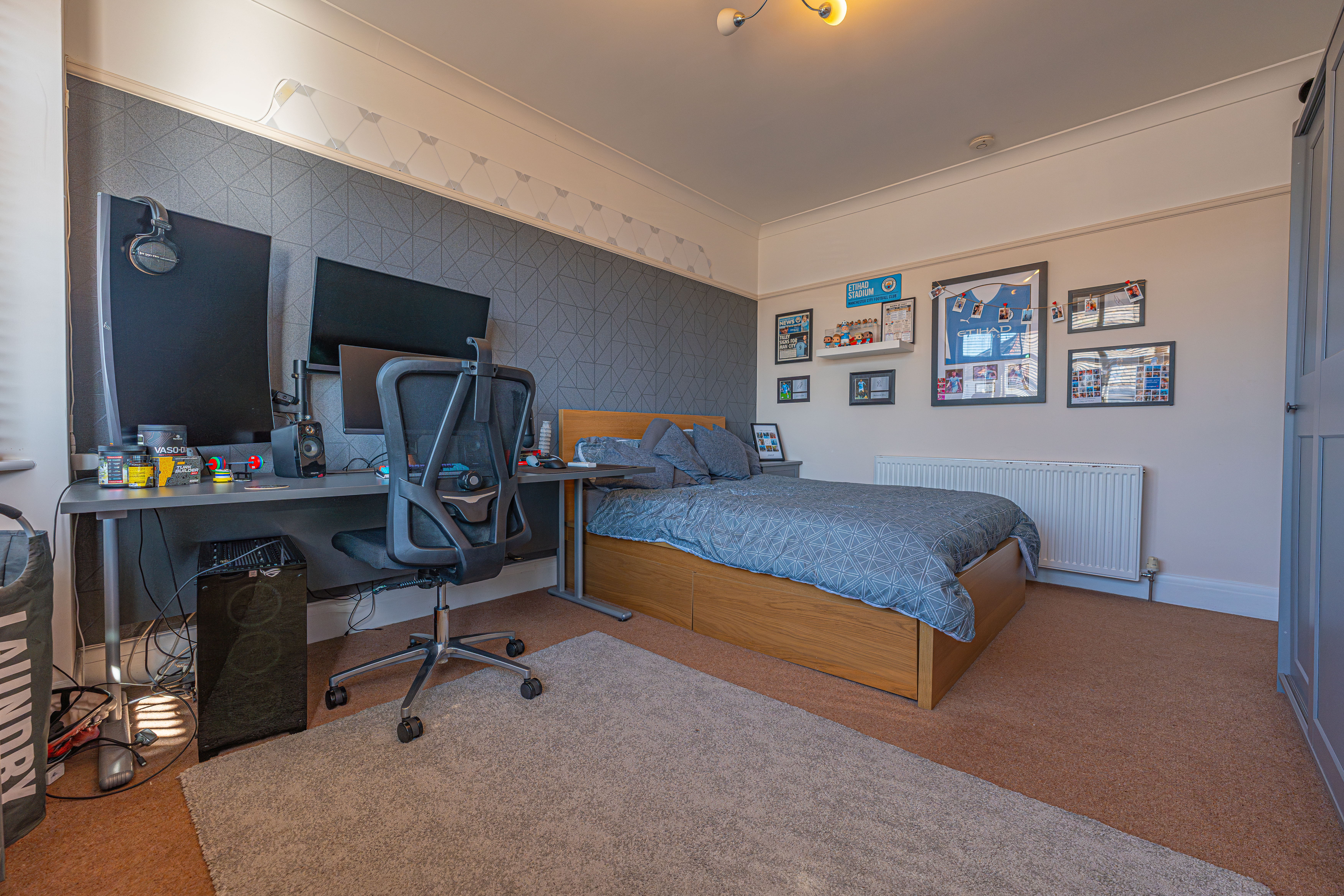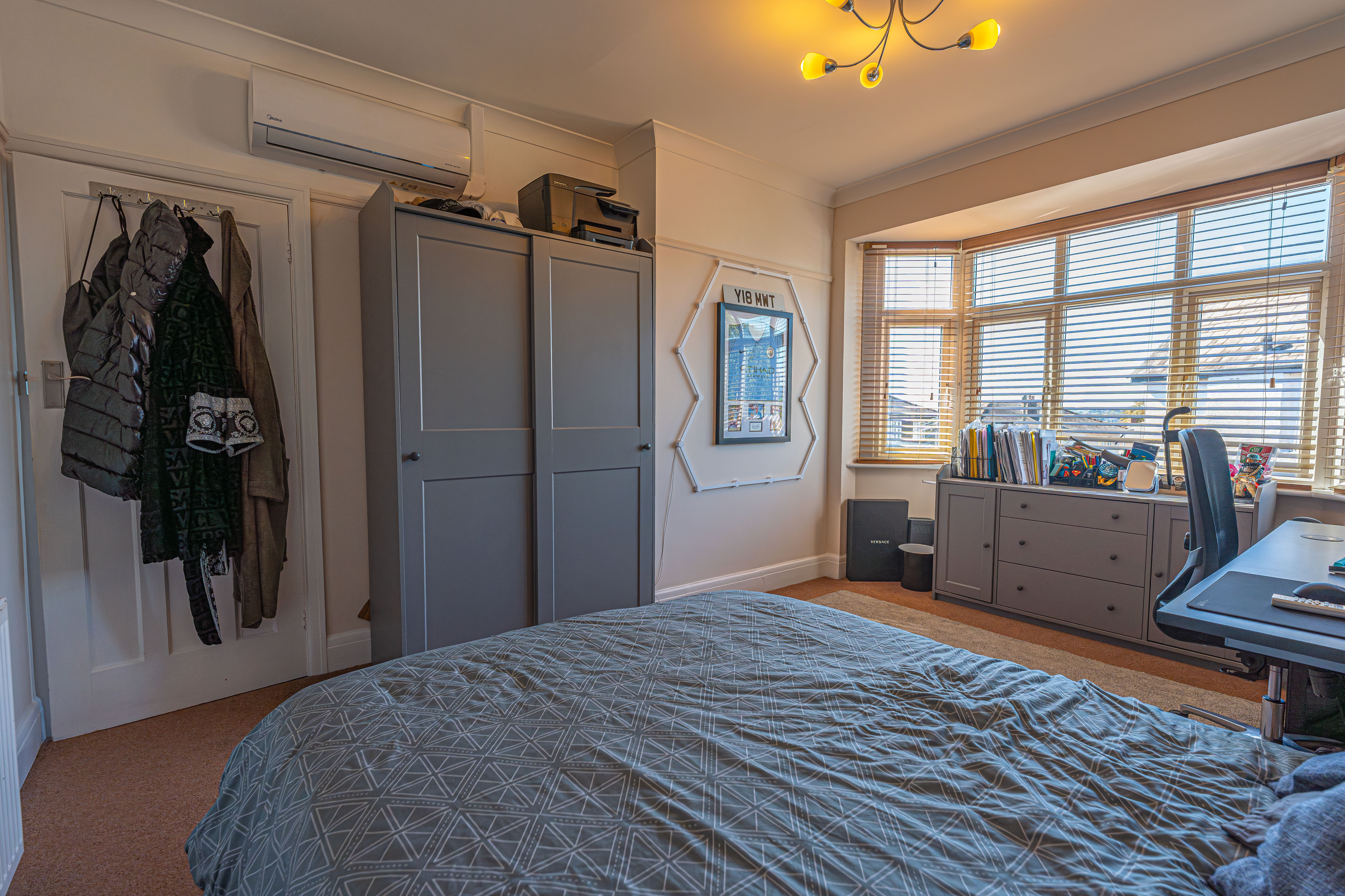 Ascending upstairs we have the four bedrooms, of which three are generously proportioned double rooms all with stunning bay windows, while the fourth being a very comfortable single room currently used as a home office - highlighting the incredible utility that the property offers. The master bedroom is the true highlight of the property, boasting an incredible size and having private access to a walk in wardrobe with fitted storage, and a large ensuite bathroom with a walk in shower. The master bedroom and second bedroom benefit from air conditioning. The family bathroom can be found from the landing sharing the stunning design as well as the walk in shower, with the addition of a separate bath, with both bathrooms provided with underfloor heating.