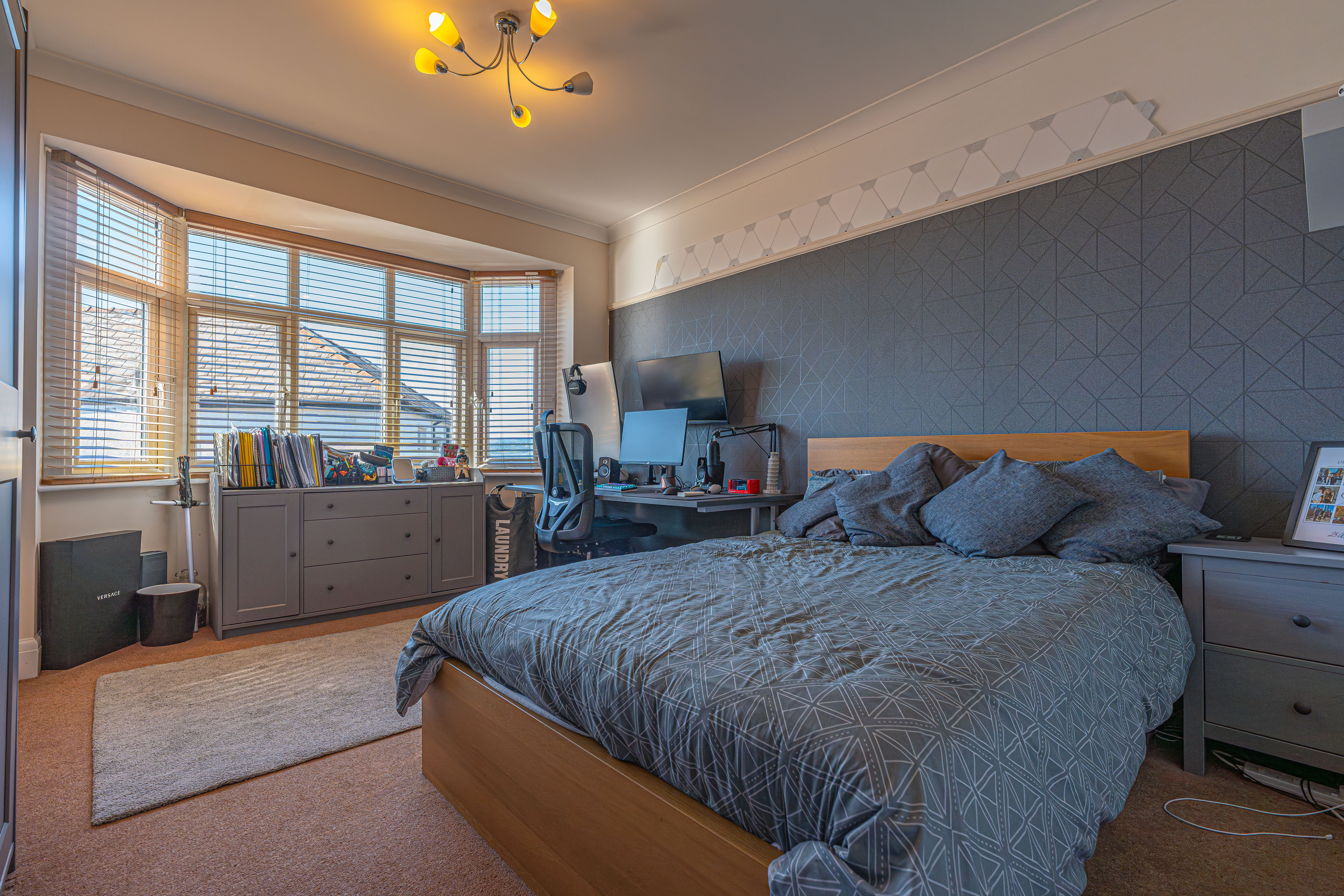 Beautifully presented throughout, this family home has three incredible reception rooms that allow for plenty of living area, and potential for a variety of uses. At the front of the house we have the first two living rooms, both with stunning bay windows that flood the room with natural light. The living room to the right is found with a charming fireplace, while to the left is being used as a cinema room with a remarkable home bar. The family room located to the rear of the house is found with a wood burner and double doors that open outside. The large kitchen comes fitted with plenty of storage as well as integrated appliances to include a fridge freezer, dishwasher, oven, grill and four ring induction hob, surrounding a convenient kitchen island that can be used for dining. Connecting from the kitchen we have a downstairs toilet, useful utility room and access to the garage from within the house, providing great storage and indoor parking.