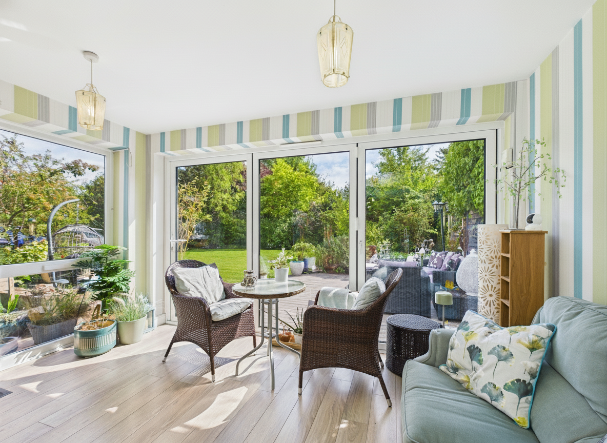 The garden is wonderful attribute of the home, enjoying a favourable southerly aspect and presenting an established outdoor sanctuary. The generous lawn is bordered by mature shrubbery and trees, whilst a composite decked seating area and paved terrace provide perfect spots for outdoor entertaining.
