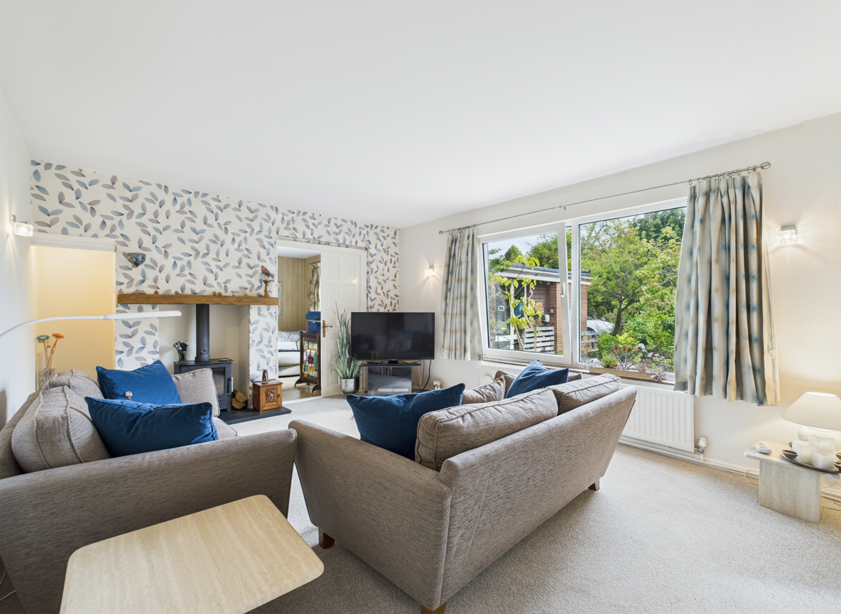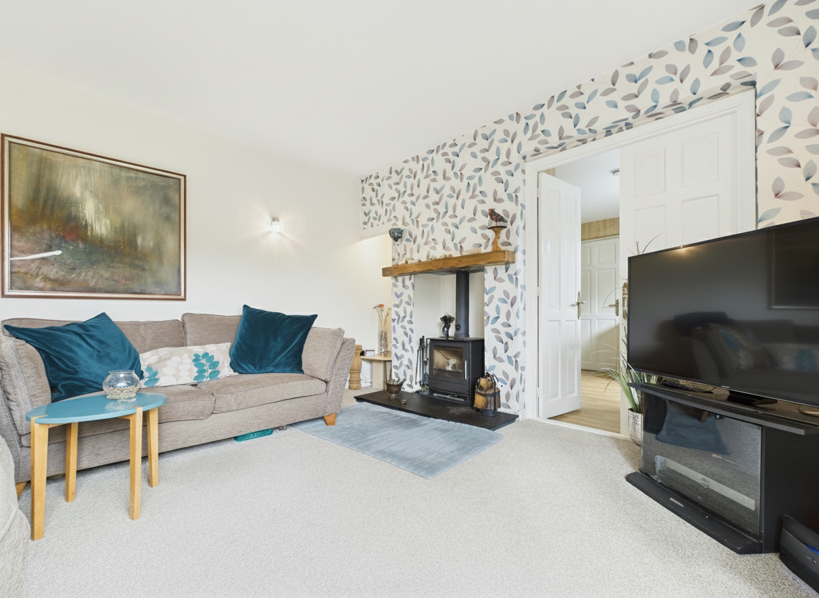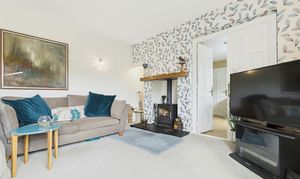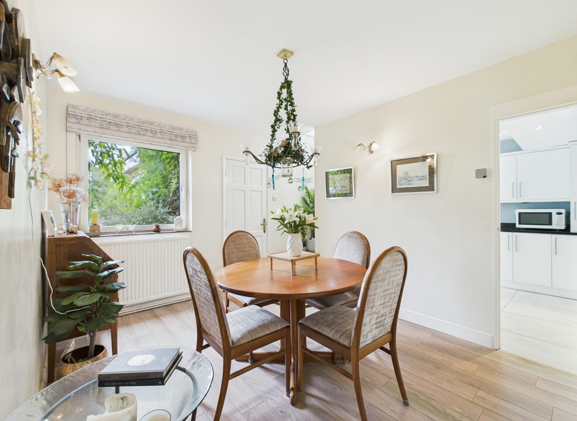 An inner hallway leads to the Dining Room, from which the staircase ascends to the first floor. Beyond lies the principal reception room—a generously proportioned Living Room centred around a coveted wood-burning stove. An open archway creates a natural division, providing an additional dining area or perhaps a reading nook, offering versatility to suit individual preferences.
