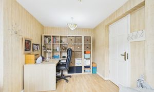 Ascending to the first floor, the landing provides access to all four bedrooms. The principal bedroom suite impresses with its initial dressing area leading through an open archway to a dual-aspect sleeping space, complemented by a particularly spacious en-suite shower room. The remaining three bedrooms are admirably served by a family bathroom, complete with a four-piece suite featuring both a separate shower cubicle and bath. Each of these additional bedrooms benefits from fitted wardrobes, whilst the fourth is currently utilised as a home office.