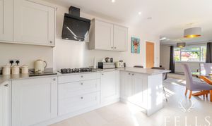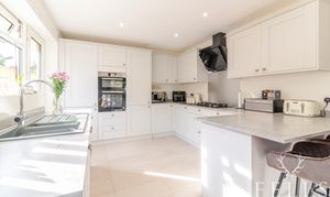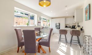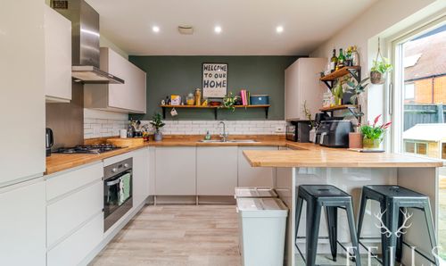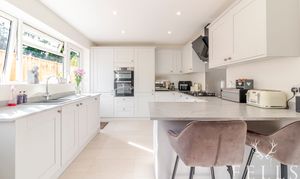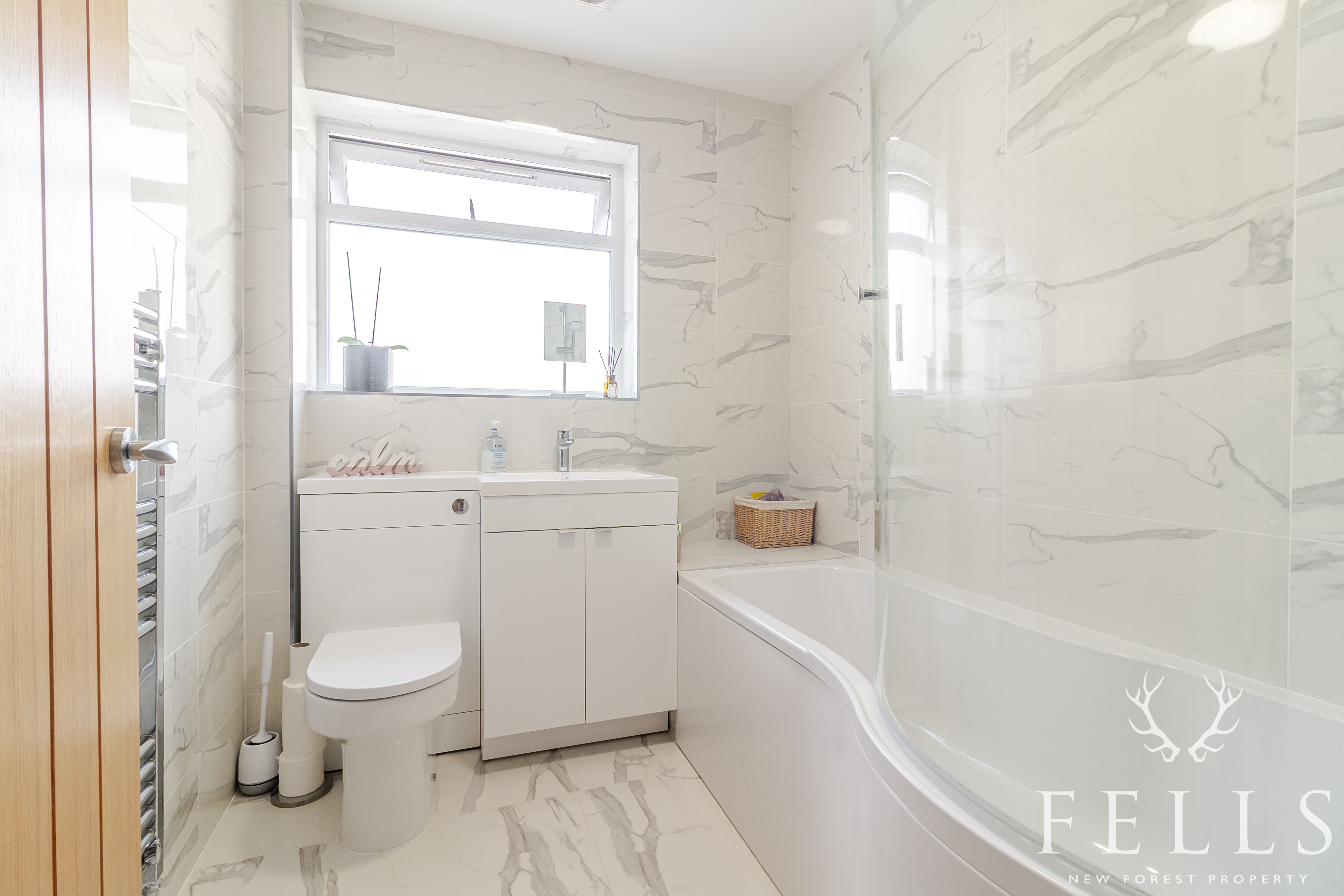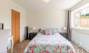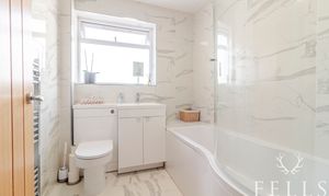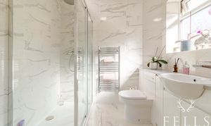 There are three well proportioned double bedrooms. The principal suite overlooks the rear garden and benefits from a sleek ensuite shower room finished in marble effect tiling with a large walk in shower. The two further bedrooms are generous doubles, one enjoying a dual aspect and the other a fitted wardrobe recess. The family bathroom continues the theme of quality with matching marble style tiling, a full suite, and fitted storage.