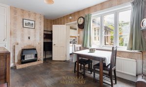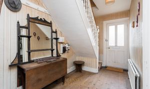 Entering the property, there is a spacious hallway with access to the living room, dining room and stairs ascending to first floor. The living room is well proportioned easily housing multiple family sofas and freestanding appliances. The room also benefits from a feature fireplace, original sash windows to front and exposed oak flooring underfoot. The dining room can easily accommodate a 6+ person dining table, and benefits from a large larder/storage area and access to the kitchen, with further oak flooring underfoot, which extends across the majority of the property. The kitchen is in need of renovation with an array of wall and base units and space for white goods. The bathroom comprises of a bath with expected sanitaryware and a separate cloakroom, which also require renovation.