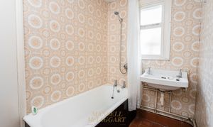 Heading upstairs, a bright and spacious hallway leads to all three bedrooms. Bedroom 1 is to the front aspect, and is of a very good size. It easily holds a king side bed and furniture, also benefitting from further original sash windows and fitted storage. Bedrooms 2 and 3 are to the rear, with bedroom 2 being a double and bedroom 3 a large single room.