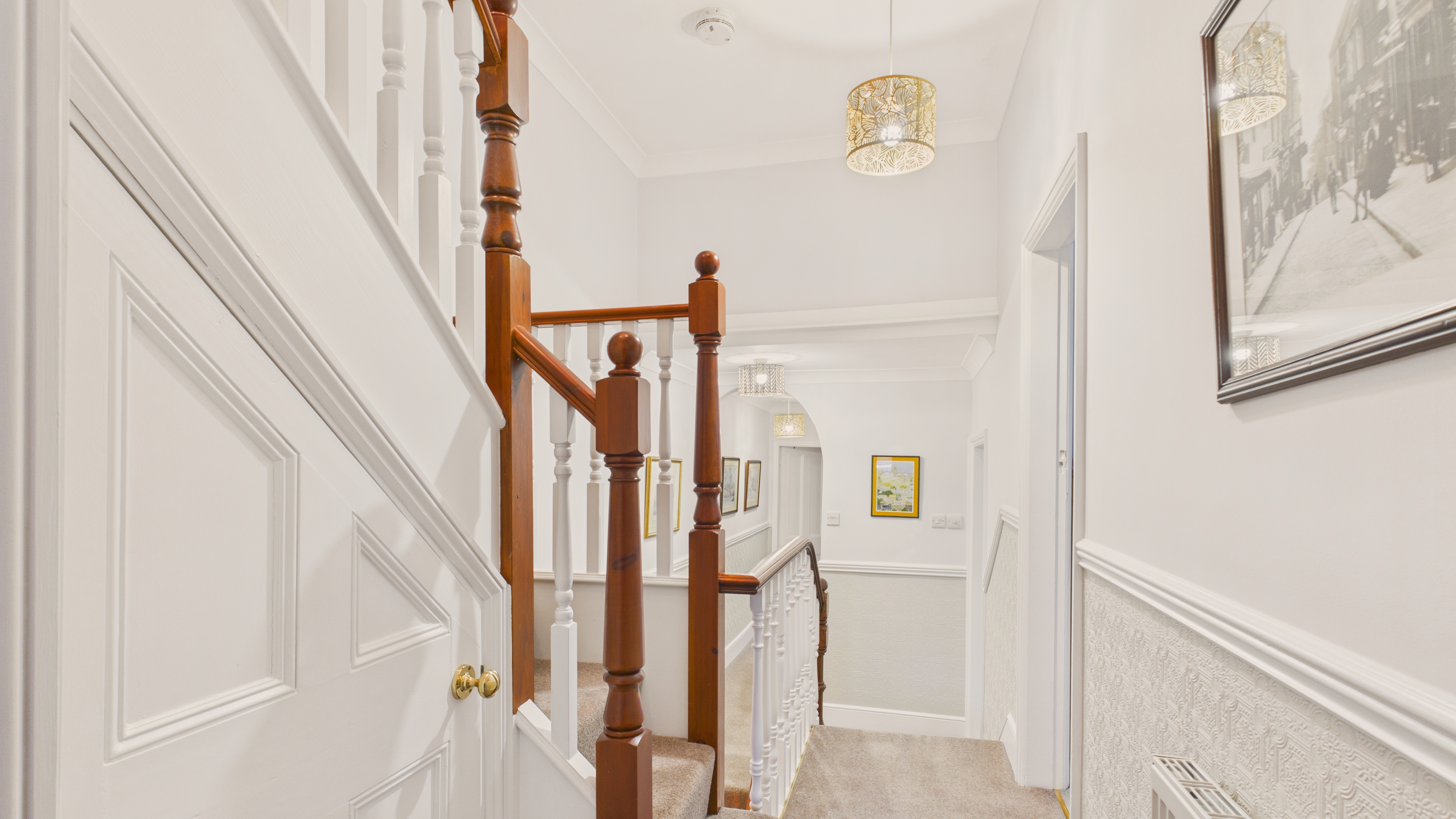 - Four double bedrooms over two floors: Principal bedroom with bay window and fitted wardrobes