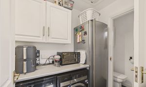 To the rear, the modern fitted kitchen offers integrated appliances and space for a breakfast area or additional dining table, making it a practical hub for everyday life. Off the kitchen, you’ll find a snug with double doors opening onto the rear garden—perfect as a second sitting room, playroom, or relaxing space with direct access outside. A separate utility room adds further convenience, alongside a ground floor WC, and there is also useful fitted understairs storage.