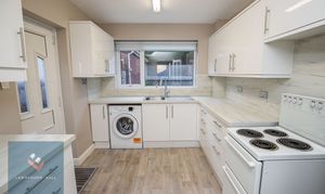 Fitted with a modern range of white gloss wall and base units with work surface over. Space and plumbing for washing machine. Space for fridge. Electric cooker. Double glazed window to rear. Double glazed door to side. Radiator.