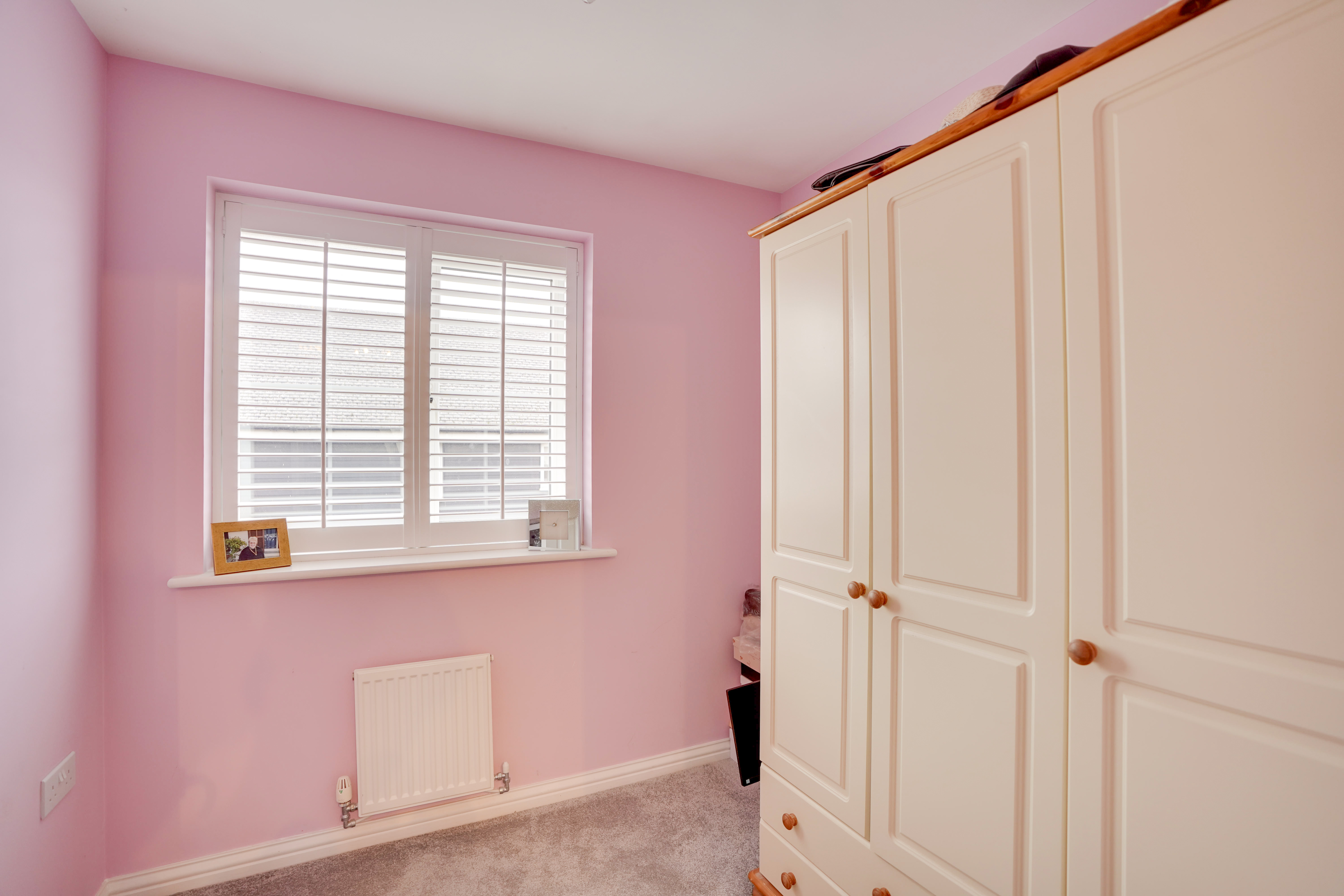 The ground floor showcases elegant shutters and contemporary vinyl flooring, combining style with practicality for everyday living.