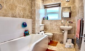Upstairs, the landing features another handy storage cupboard, providing even more room to keep things organised. The family bathroom is tastefully decorated and designed with comfort in mind, complete with a shower over the bath (perfect for both quick showers and relaxing soaks).