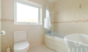 An inner hall leads to all three bedrooms and the bathroom, creating a practical and well balanced layout. The principal bedroom sits to the front with built in mirrored wardrobes, while the second bedroom overlooks the garden and also benefits from fitted storage. The third bedroom, a small double, offers flexibility as a guest room, home office or hobby space. The bathroom is fully tiled and includes a shaped bath with electric shower, with natural light provided by an opaque rear window. Additional storage and access to the loft space can be found from the hall, along with a cupboard housing the recently installed Worcester boiler.