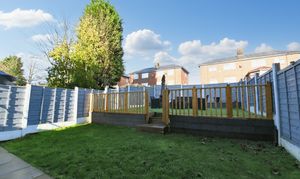 A well presented garden to the rear with paved seating area, natural & artificial lawns, and gated side access.