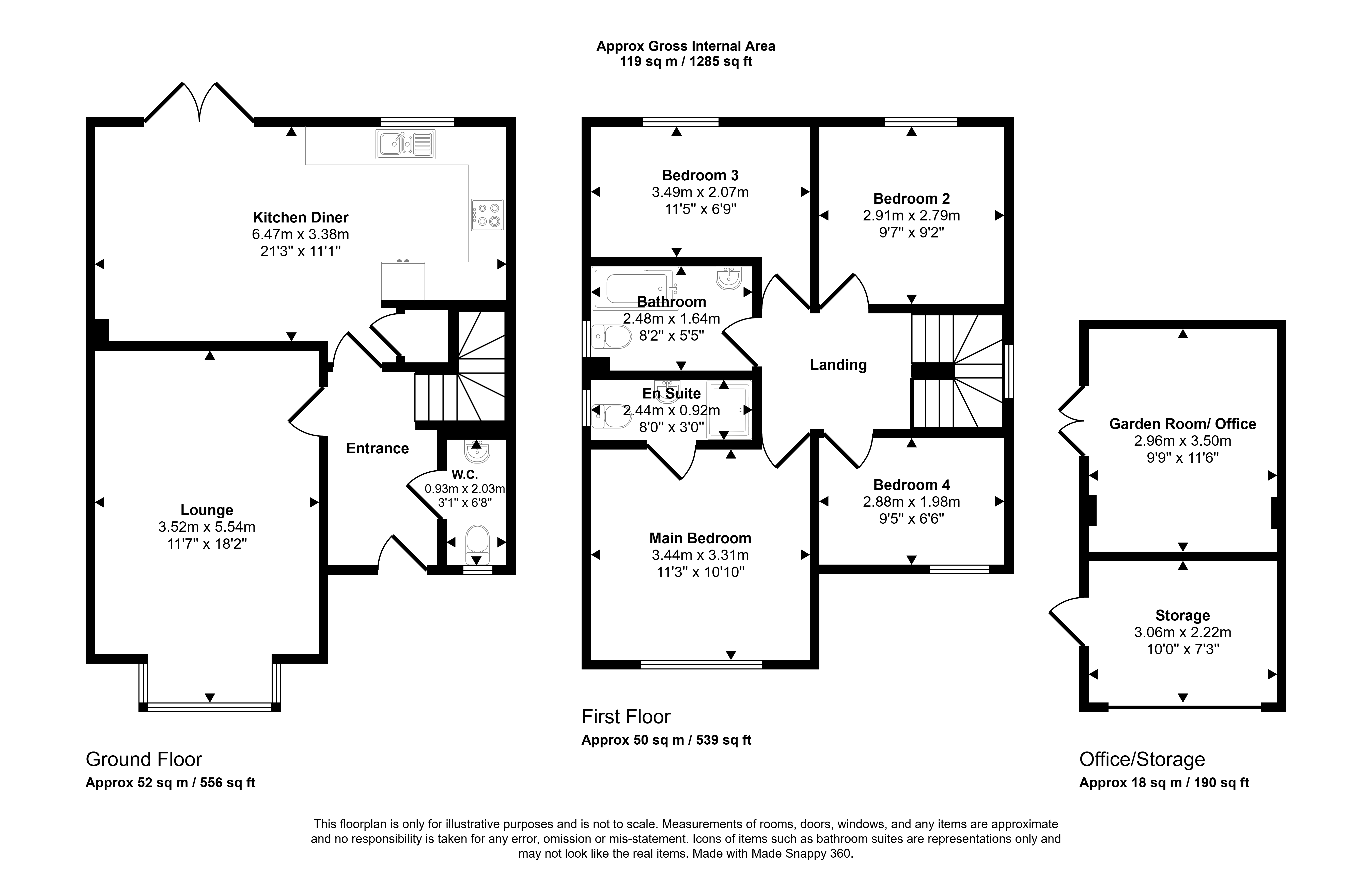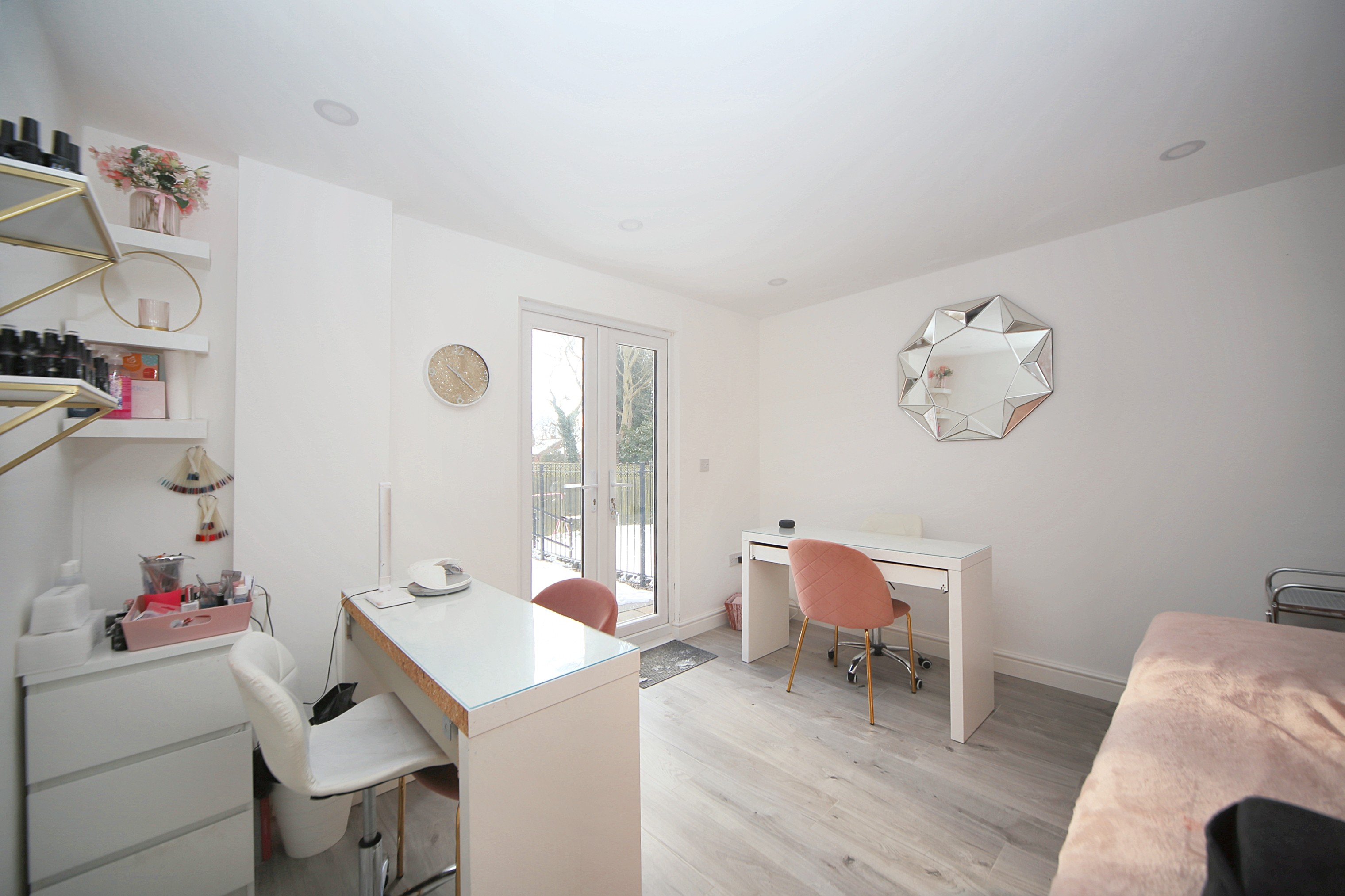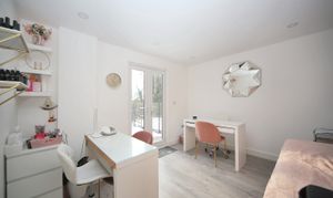Complementing the interior, the property boasts a large garden with a patio area and artificial lawn, offering an outdoor space for relaxation or outdoor activities. The converted garage provides added versatility with a garden room that can serve as an office space, as well as a separate storage area for your belongings.