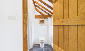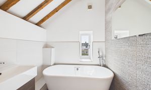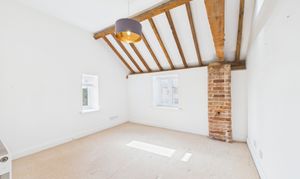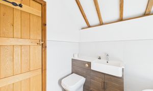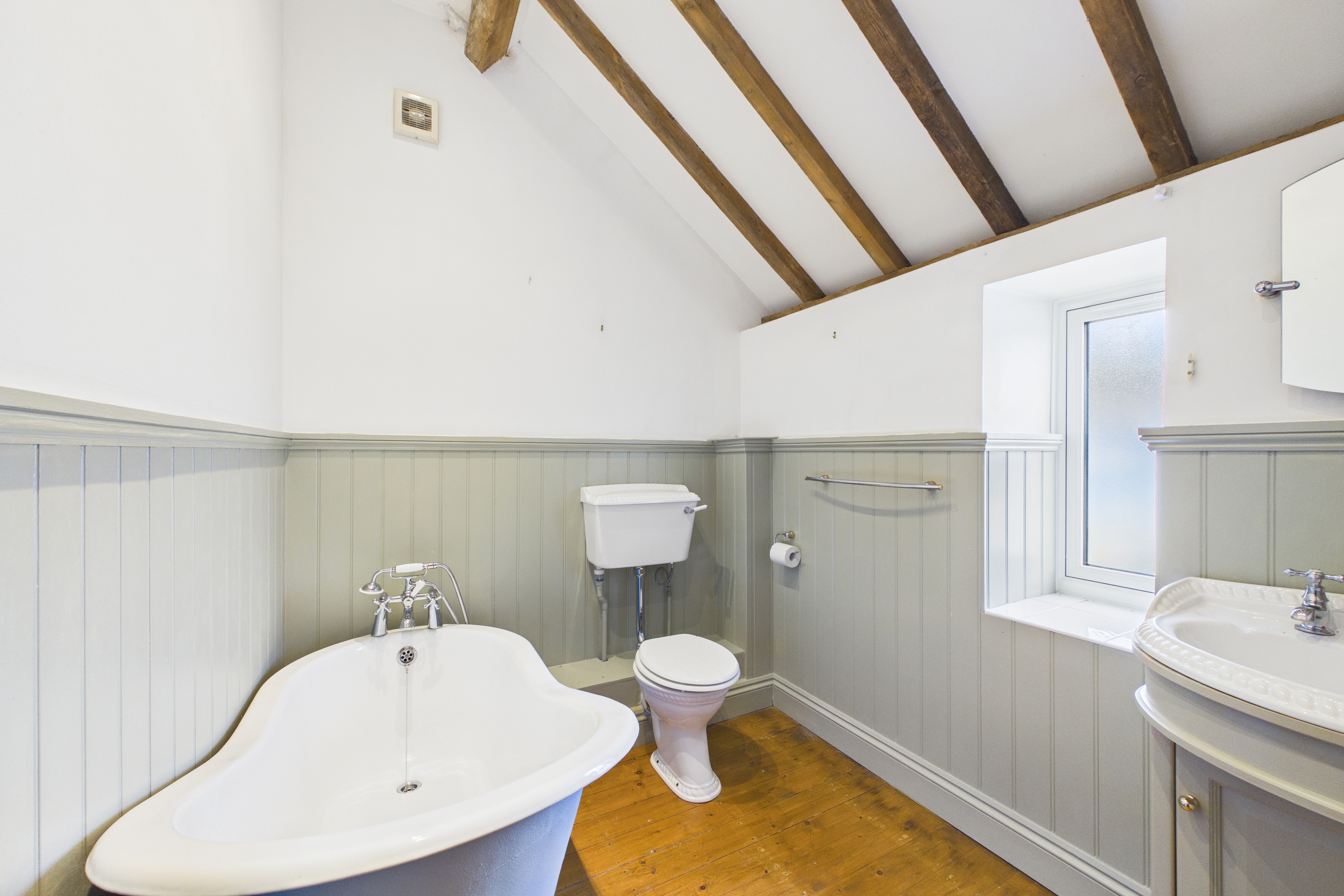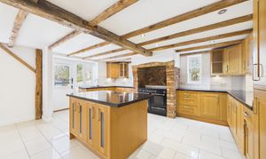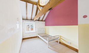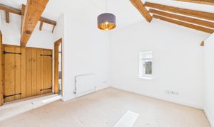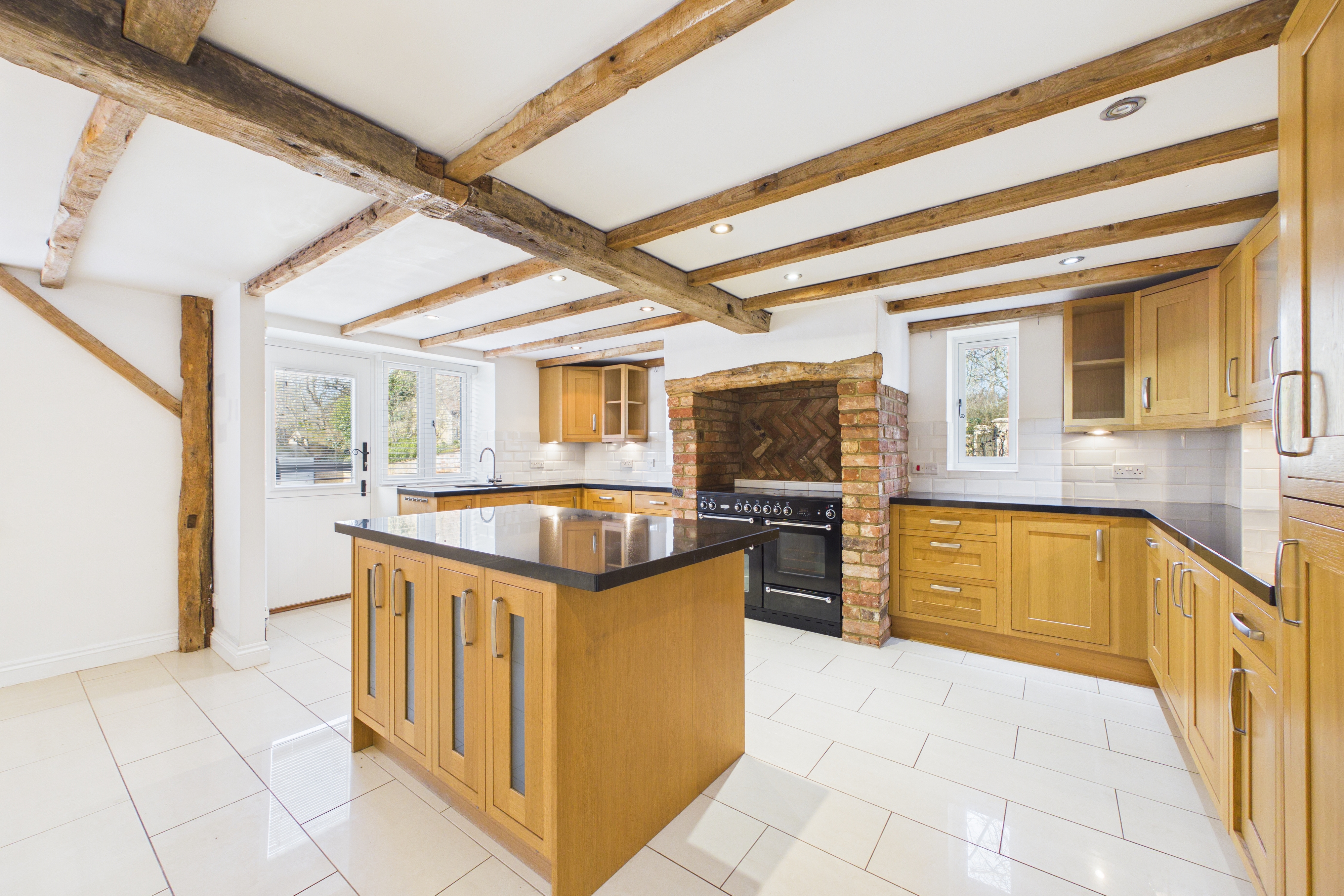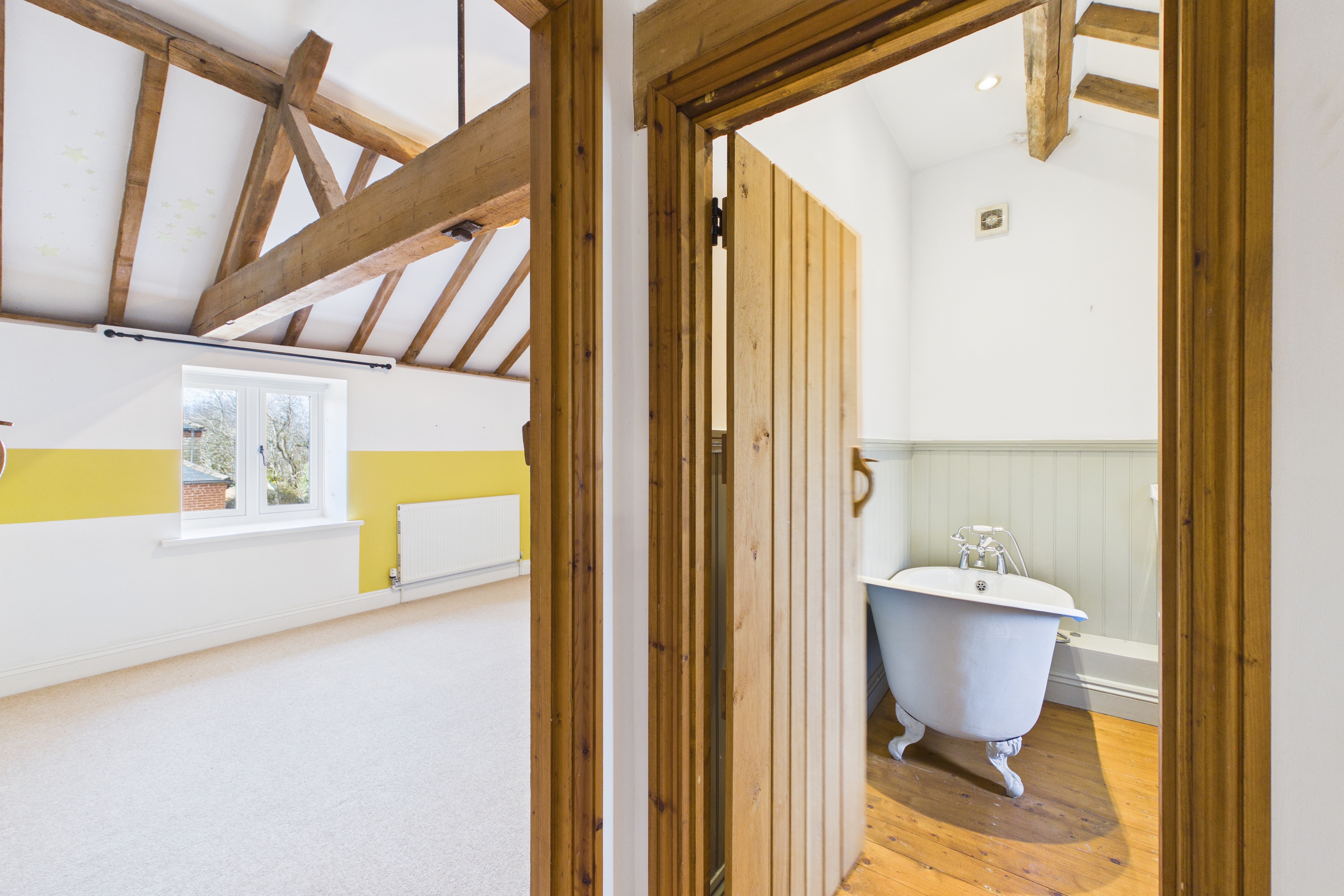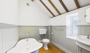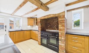 Extending to over 2,000 sq ft, the accommodation is generous, balanced and filled with natural light. The standout feature is undoubtedly the principal living room. With its vaulted ceiling rising to a beautiful gallery above, exposed beams and a striking sense of volume, it is a space that feels both impressive and comfortable. It is easy to imagine winter evenings gathered around the fireplace, or summer days with doors open to the garden and children moving freely between inside and out.