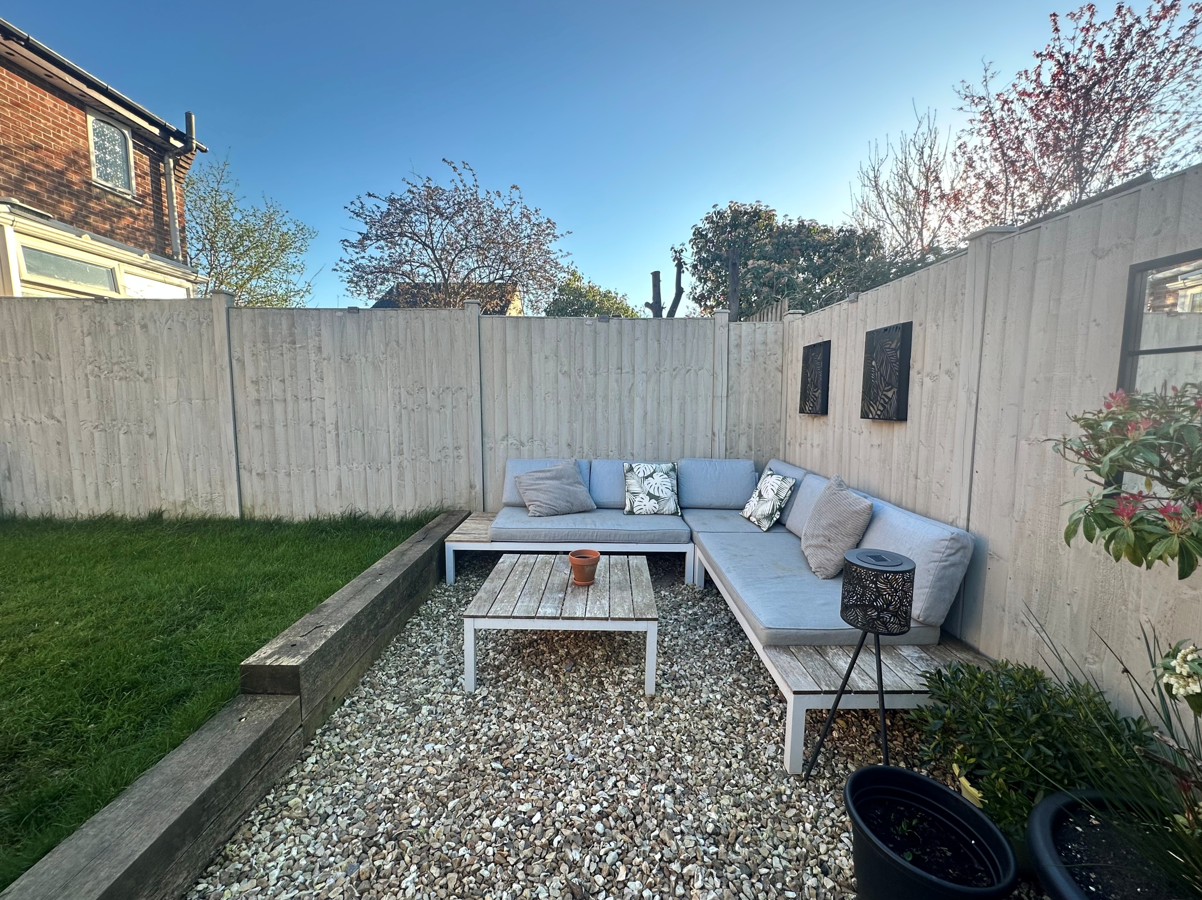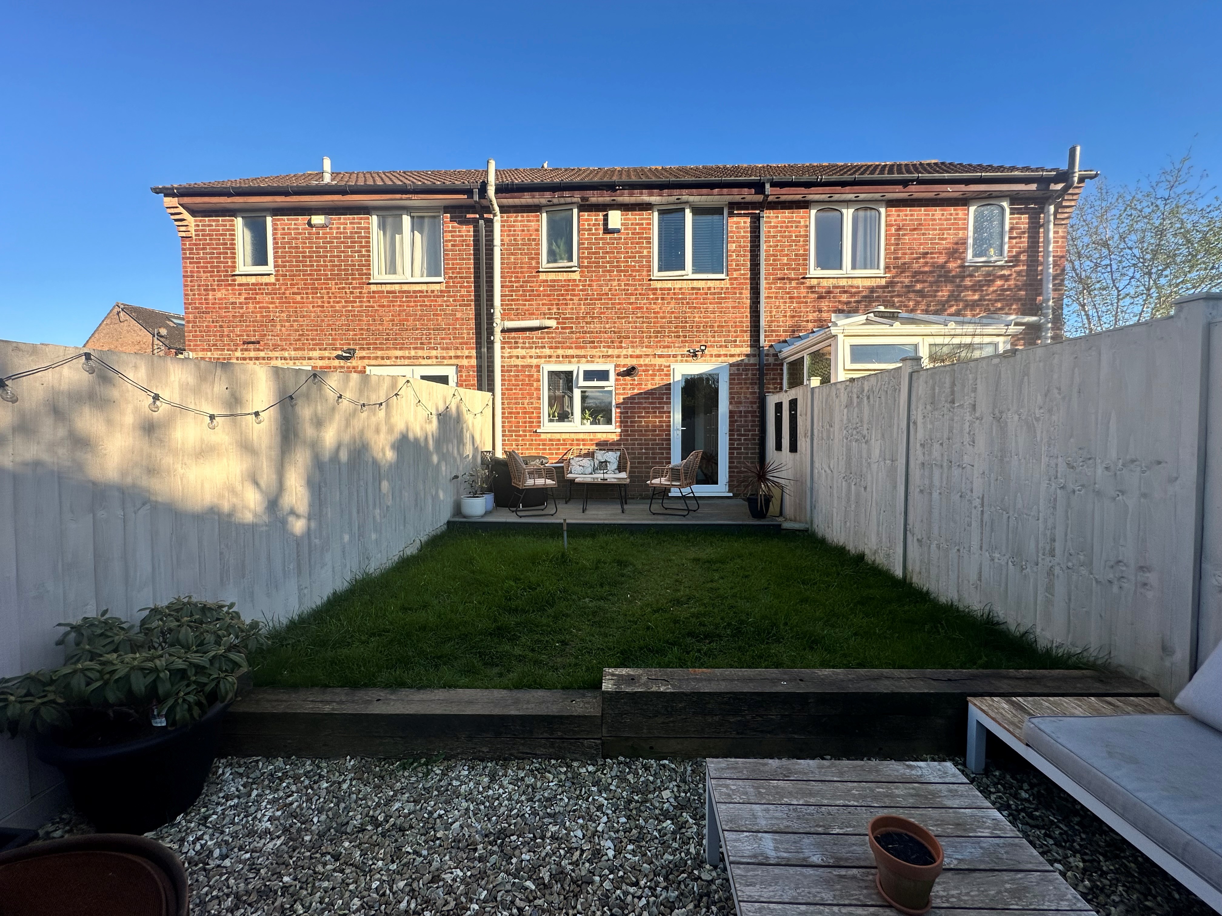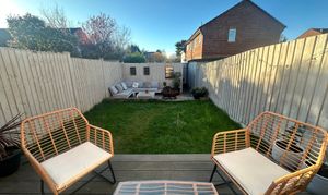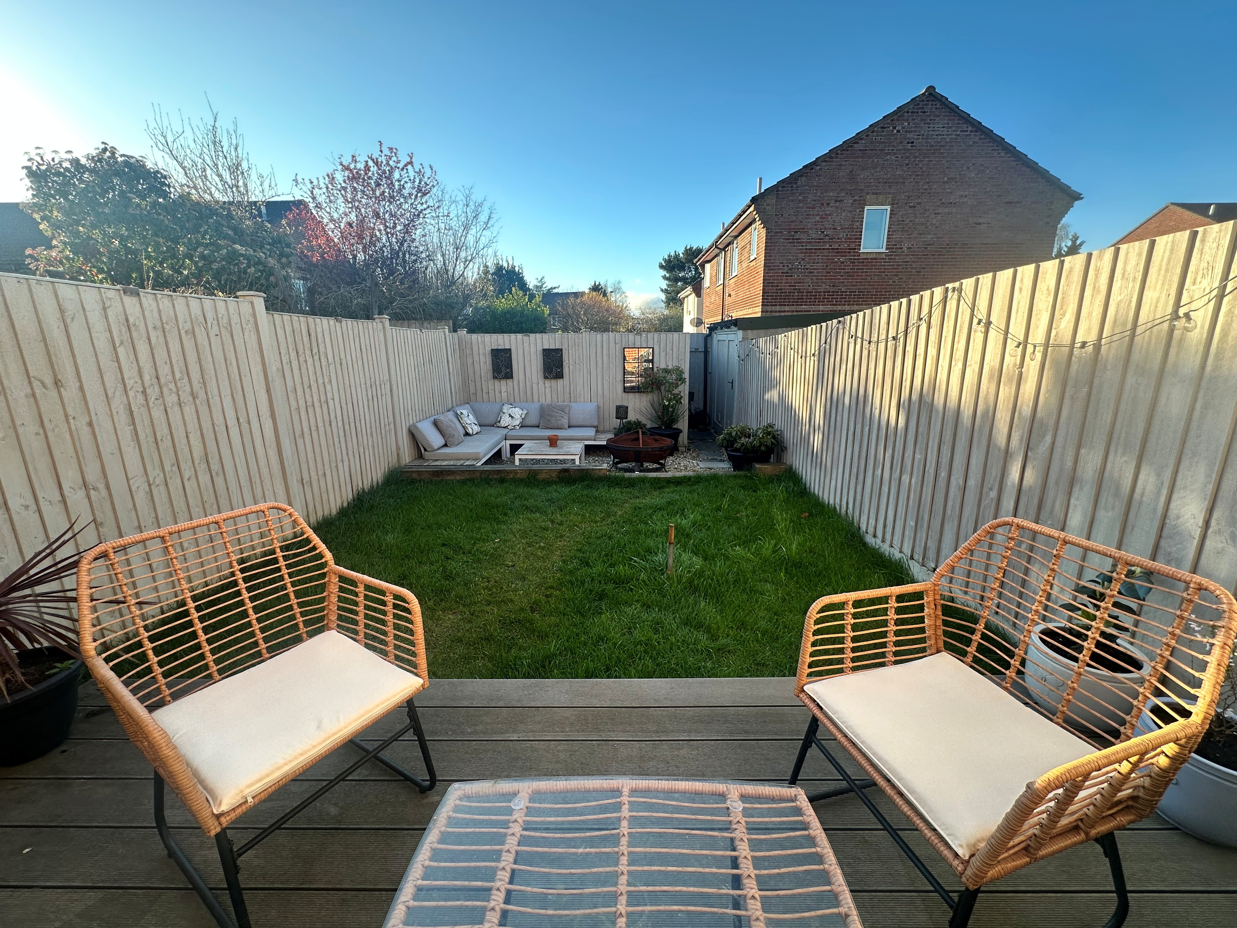 STEP OUTSIDE: To the front of the property there are mature borders providing privacy, along with a small lawned area and gated access. To the rear, accessed via the kitchen patio door, you step directly onto a decked area — an ideal space for entertaining or relaxing. Beyond this, the garden is laid to lawn, making it perfect for children or pets. At the end of the garden is a pleasant outdoor seating area, with access through to the rear of the garage and driveway. The property further benefits from a driveway providing off-road parking for one vehicle, along with a single garage, ideal for additional storage.