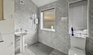 Upstairs, three well-proportioned bedrooms, all providing comfortable retreats for family members or guests, each benefitting from pleasant outlooks and flexible layouts to suit a variety of furnishing styles. The main bathroom is fitted with contemporary suite, with wet room style shower, vanity sink and wc.