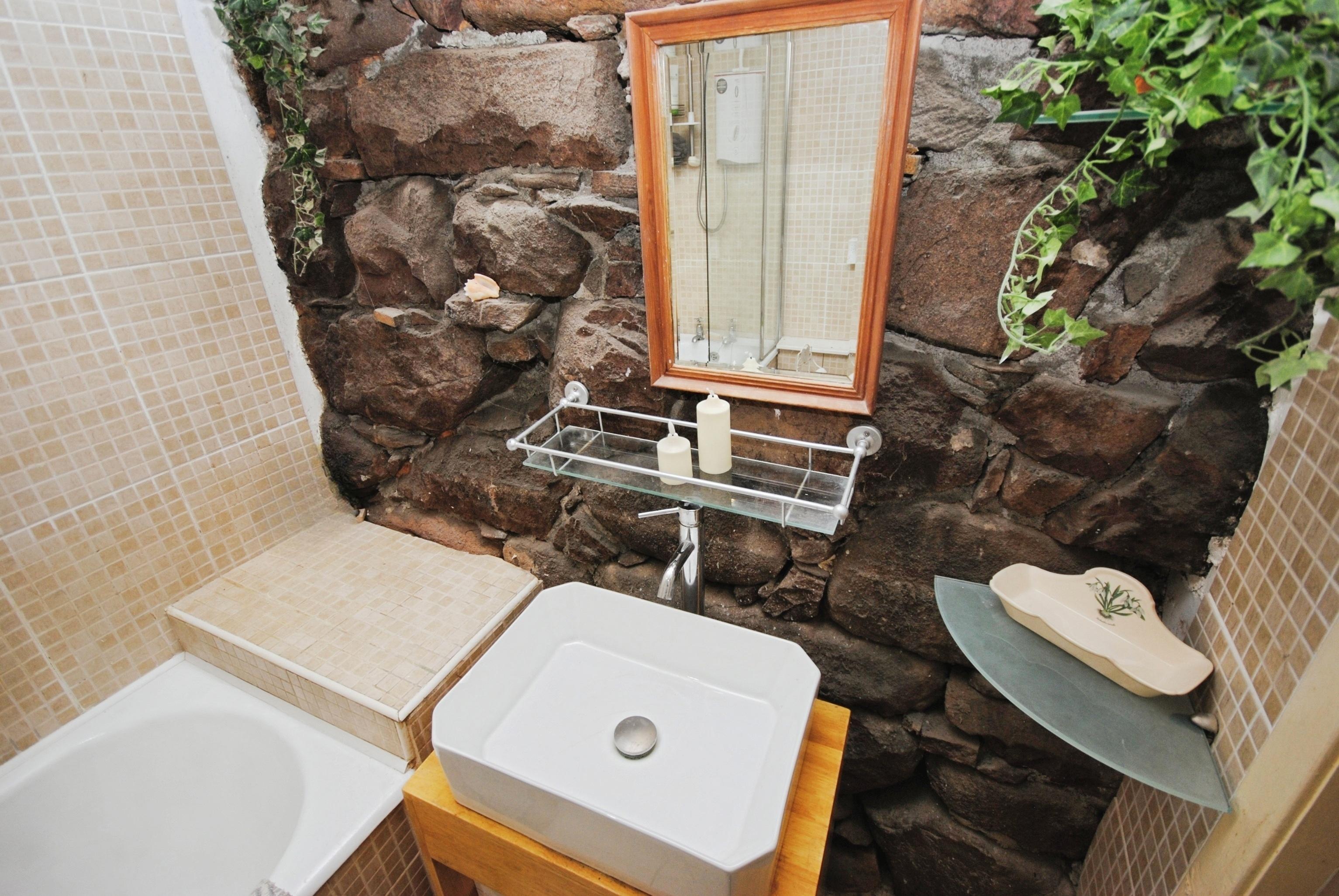 - Atmospheric lounge with exposed stone walls