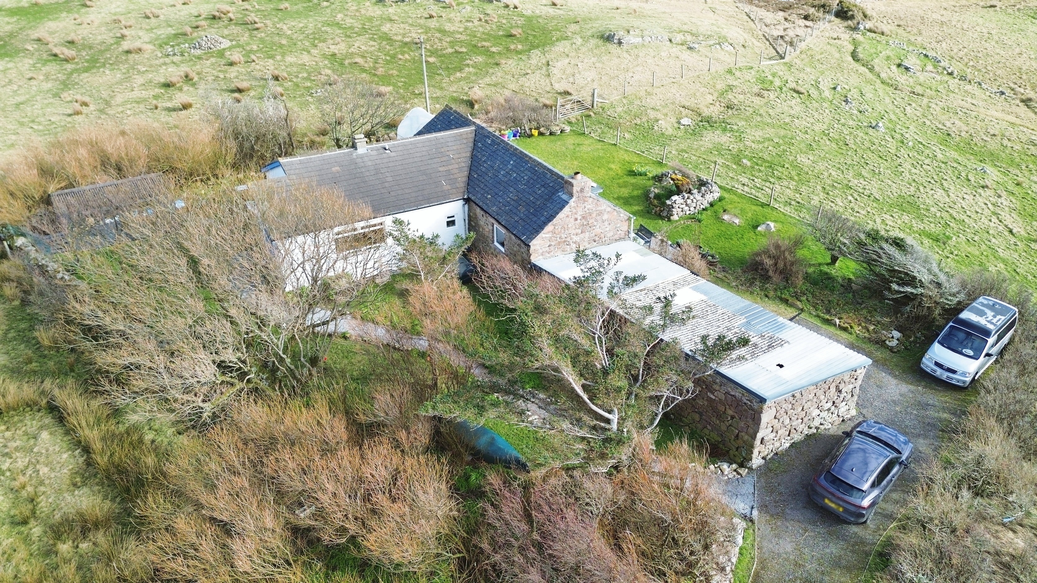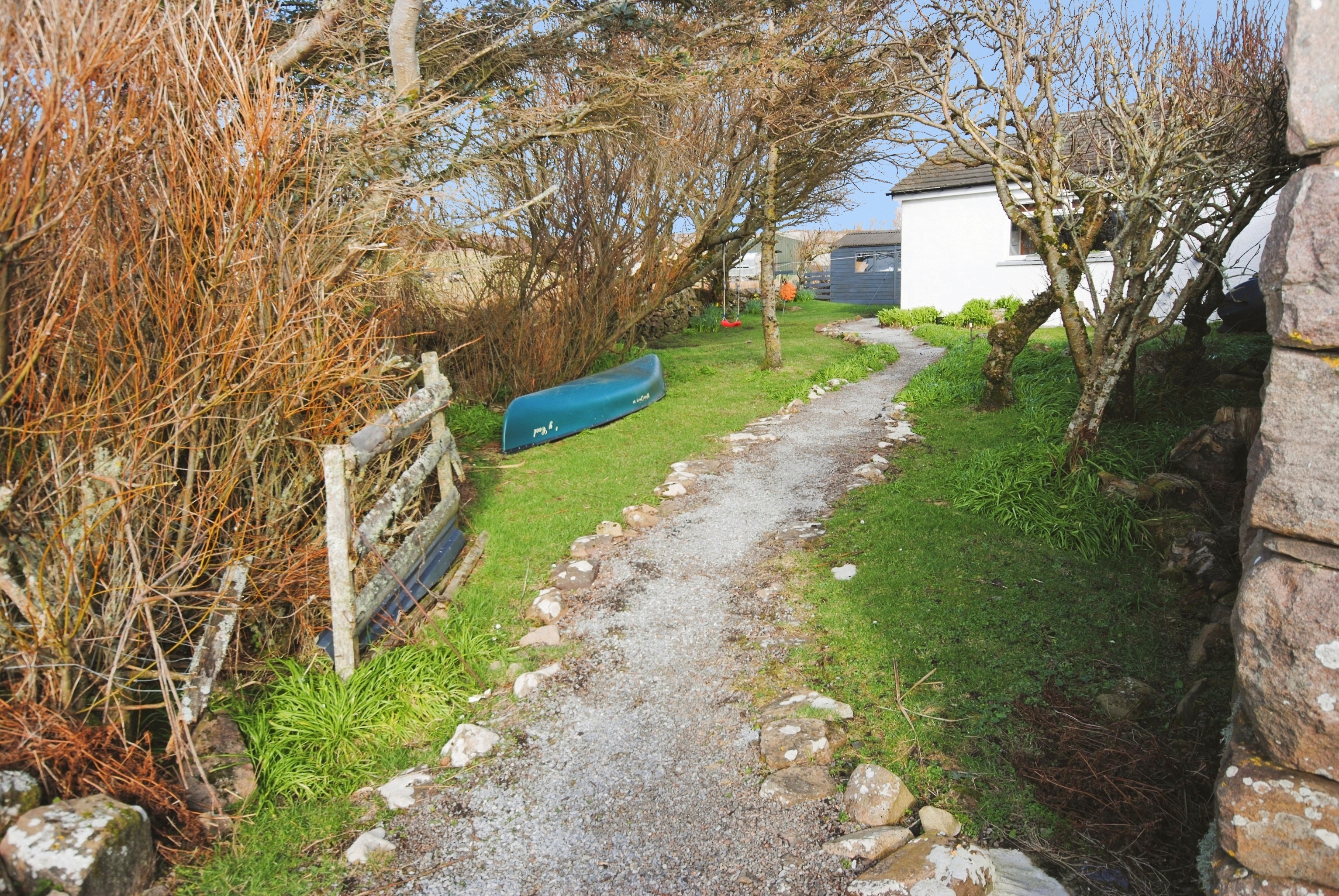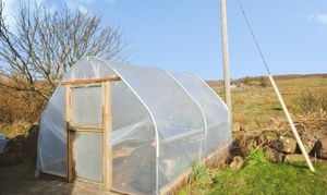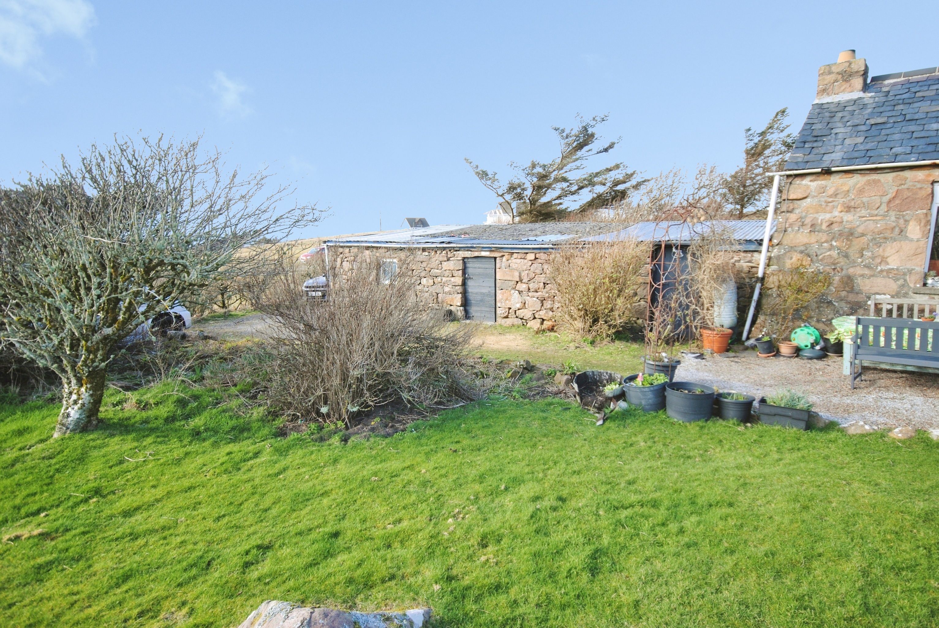 Large area of garden ground offering multiple uses. The polytunnel and raised beds allow ample opportunity for cultivating fruit and vegetables with the area well-known for its mild climate. The patio sitting area enjoys spectacular views out to sea.
