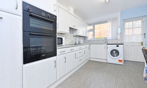 Upon entering into the hallway, you are greeted by a large fitted kitchen, thoughtfully designed with ample storage and workspace, complete with room for a dining table, making it the perfect spot for morning coffees or evening meals. The well-proportioned sitting room overlooks the front of the property, creating a warm and welcoming ambience for relaxation and entertaining.