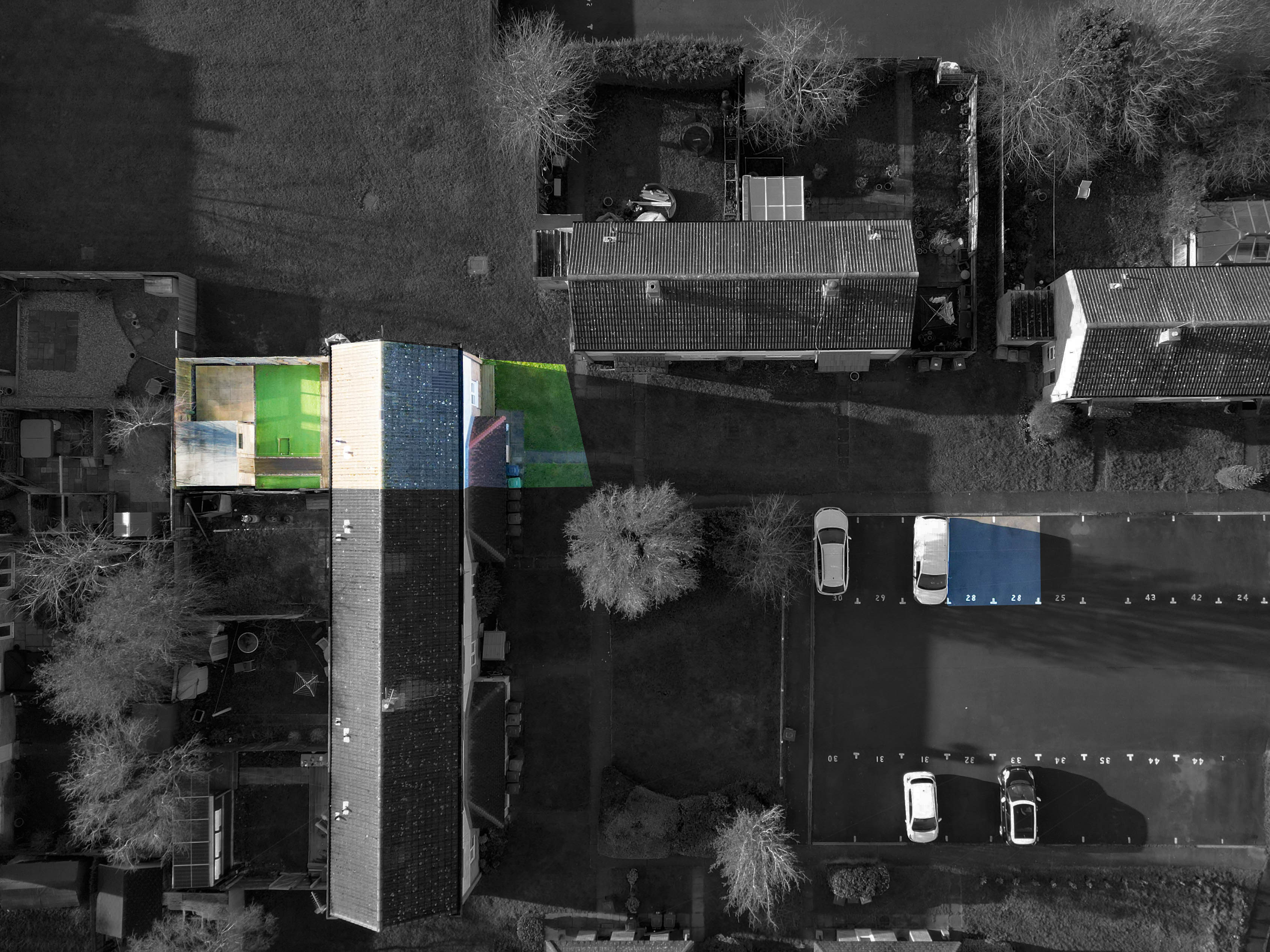 To the front there is a storm porch with small brick storeroom, two allocated parking spaces and a small raised decked area. To the rear, the garden is enclosed by fencing with side gated access onto a green area. The garden is low maintenance with a timber decked area leading to an astro turf lawned area and patio to the rear. There is also a timber shed.