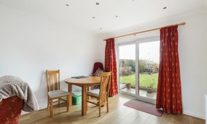 Window to front, fireplace with wood burning stove, 2 x radiators, patio doors leading to rear garden, laminate flooring.