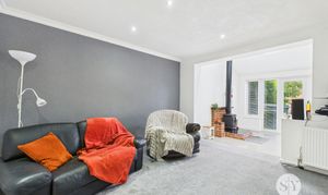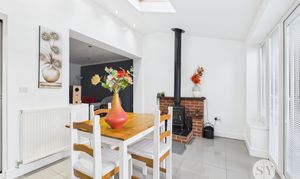 Upon entering through the welcoming porch, you are greeted by a comfortable lounge featuring stairs that lead to the first floor. The ground floor also benefits from a modern bathroom and a well-appointed kitchen, perfect for everyday family life. The property further benefits from a second reception room which opens seamlessly into a separate dining area complete with a feature log burner—an ideal setting for relaxing or entertaining.