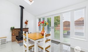 Tile Flooring, Wood Burning Stove, panel radiator, uPVC double glazed window, uVPC double doors to Garden, Velux window, space for dining table.