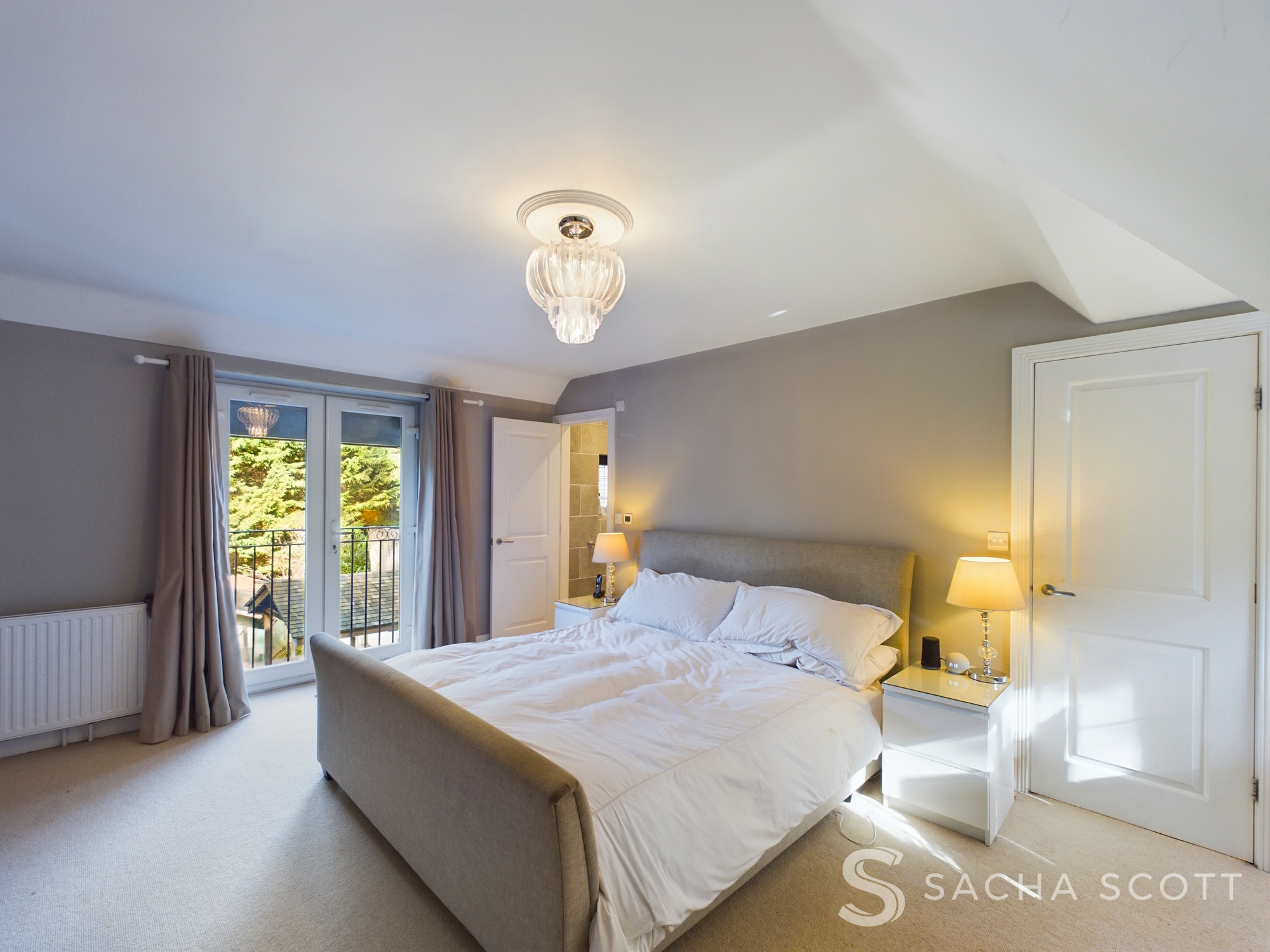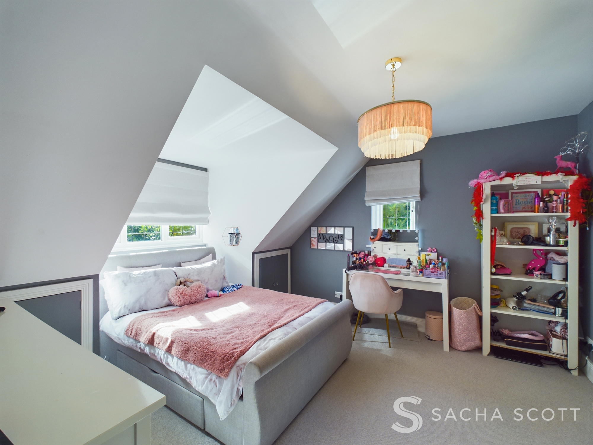 Generous and modern, this spacious primary bedroom spans the depth of this gorgeous family home and benefits from dual aspect views to the front and rear, with fantastic views from the rear juliet balcony. Benefiting from a modern en-suite bathroom and a walk in dressing room, this stunning primary suite is presented in good order throughout.