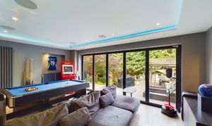 Overlooking the rear garden and offering access via bi-fold doors, this fantastic additional reception is currently used as a family games room and benefits from multi-colour lighting, built-in speakers and modern decor. Overlooking and offering access to the rear garden via bi-fold doors, this is a bright and spacious room that is in beautiful condition throughout.