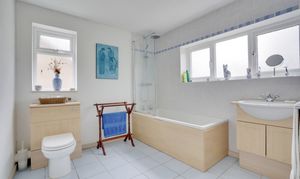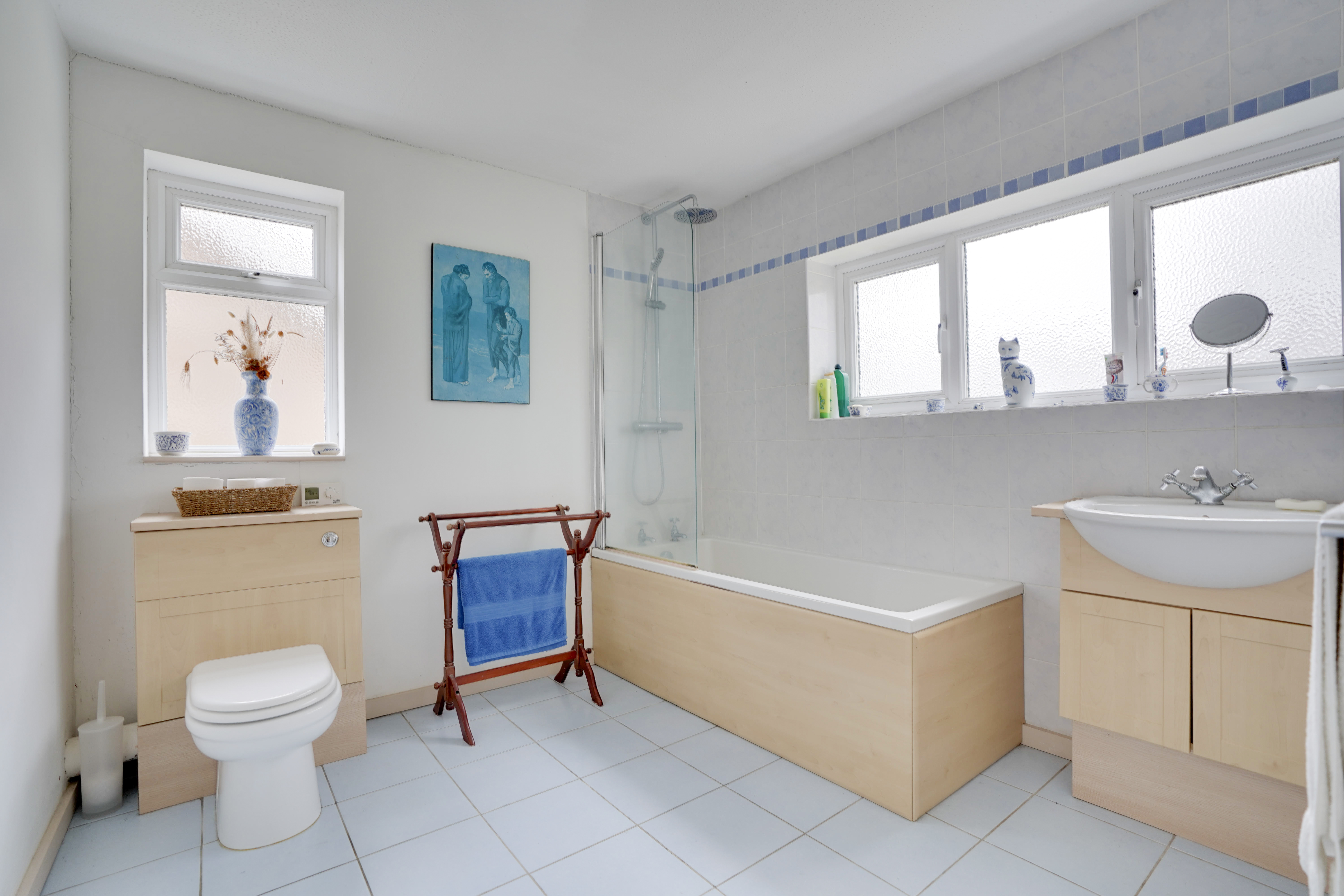 Upstairs are four generously sized bedrooms, two of which benefit from built-in storage cupboards, all enjoying plenty of natural light. The family bathroom comprises a panelled bath with shower attachment over, wash hand basin, and WC. There is also a useful airing cupboard housing the boiler. The loft is fully boarded, providing excellent storage space.