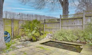 The rear garden is predominantly laid to lawn with well-stocked beds and a patio area ideal for al fresco dining. There are two ponds with running electrics and a gate providing access to Jockey Club land (available at certain times), perfect for walks and dog walking, with panoramic views beyond.