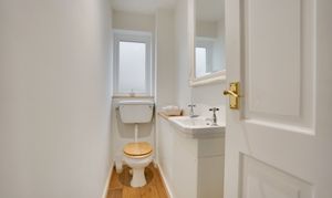 The property is entered via a good-sized lobby with solid wood flooring and stairs leading to the first floor. Doors lead to the sitting room, kitchen, and downstairs cloakroom.