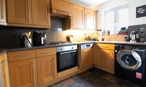 - Modern kitchen fitted with oak effect shaker style units
