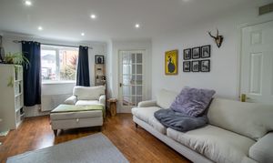 The lounge is located at the front of the property and benefits from plenty of natural light, from the large window and the Georgian glazed door leading in from the hall. There is laminate covering to the floor, a useful understairs storage cupboard, and the room provides access to the kitchen.