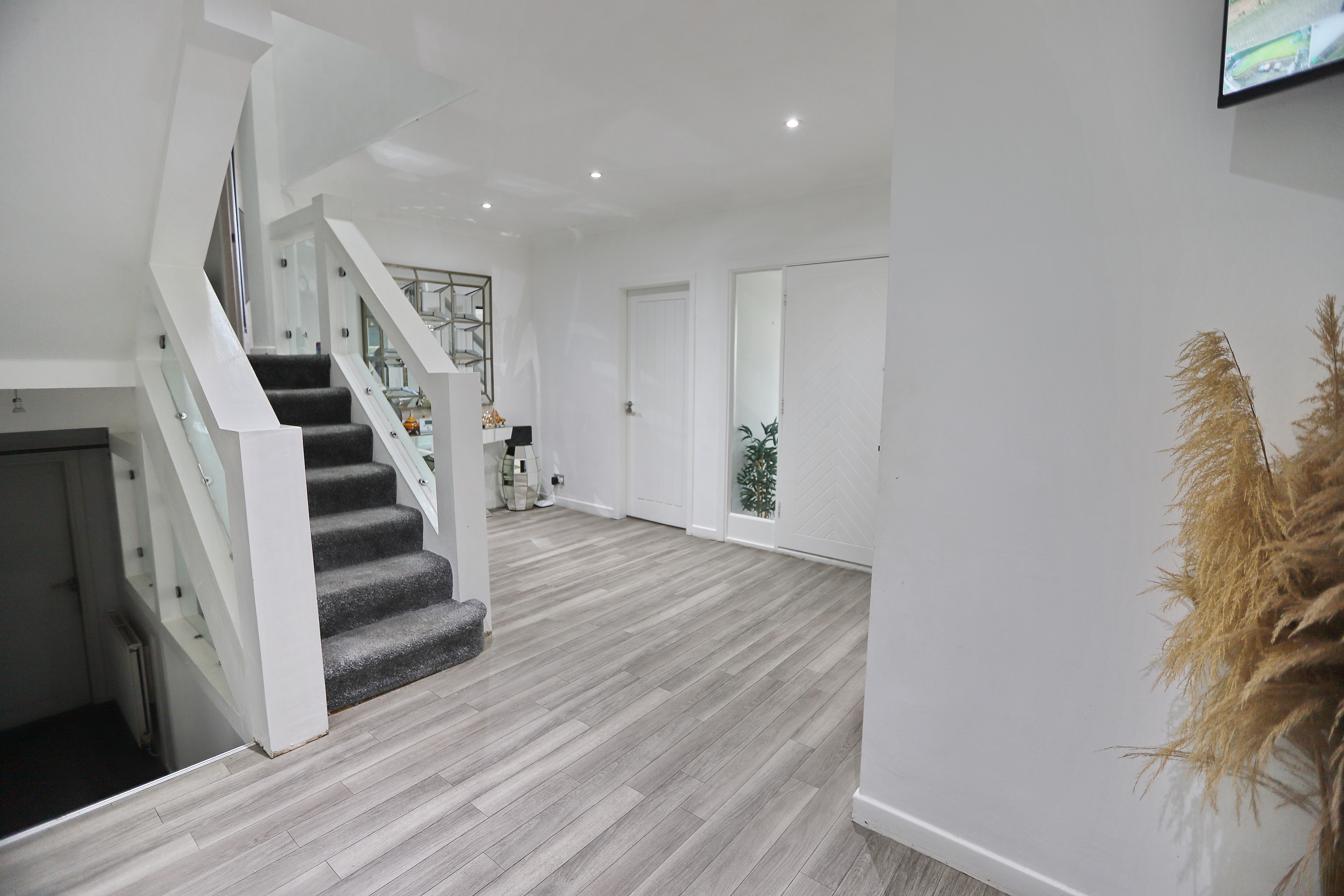 Upon entering, you are welcomed into a spacious and inviting hallway that leads to a stunning lounge, featuring a modern media wall (perfect for family relaxation or entertaining guests). The heart of the home is the magnificent open plan living, dining, and kitchen area, thoughtfully designed to maximise space and natural light, with impressive bi-fold doors that create a seamless flow throughout the ground floor. The kitchen is fitted with high-quality appliances, sleek cabinetry, and a generous island, making it ideal for both family meals and entertaining with integrated appliances.