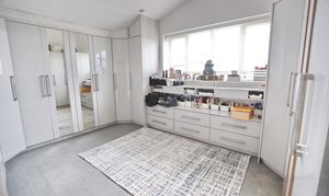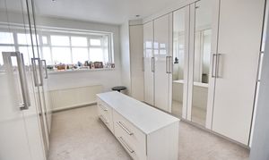 Upstairs, there are six well-proportioned double bedrooms, two of which are currently utilised as luxurious dressing rooms with bespoke modern furniture, offering flexibility for growing families or those seeking ample storage and personal space. The property benefits from three stylishly appointed bathrooms and wetrooms, each finished to a high standard with contemporary fixtures and fittings, ensuring comfort and convenience for all household members.