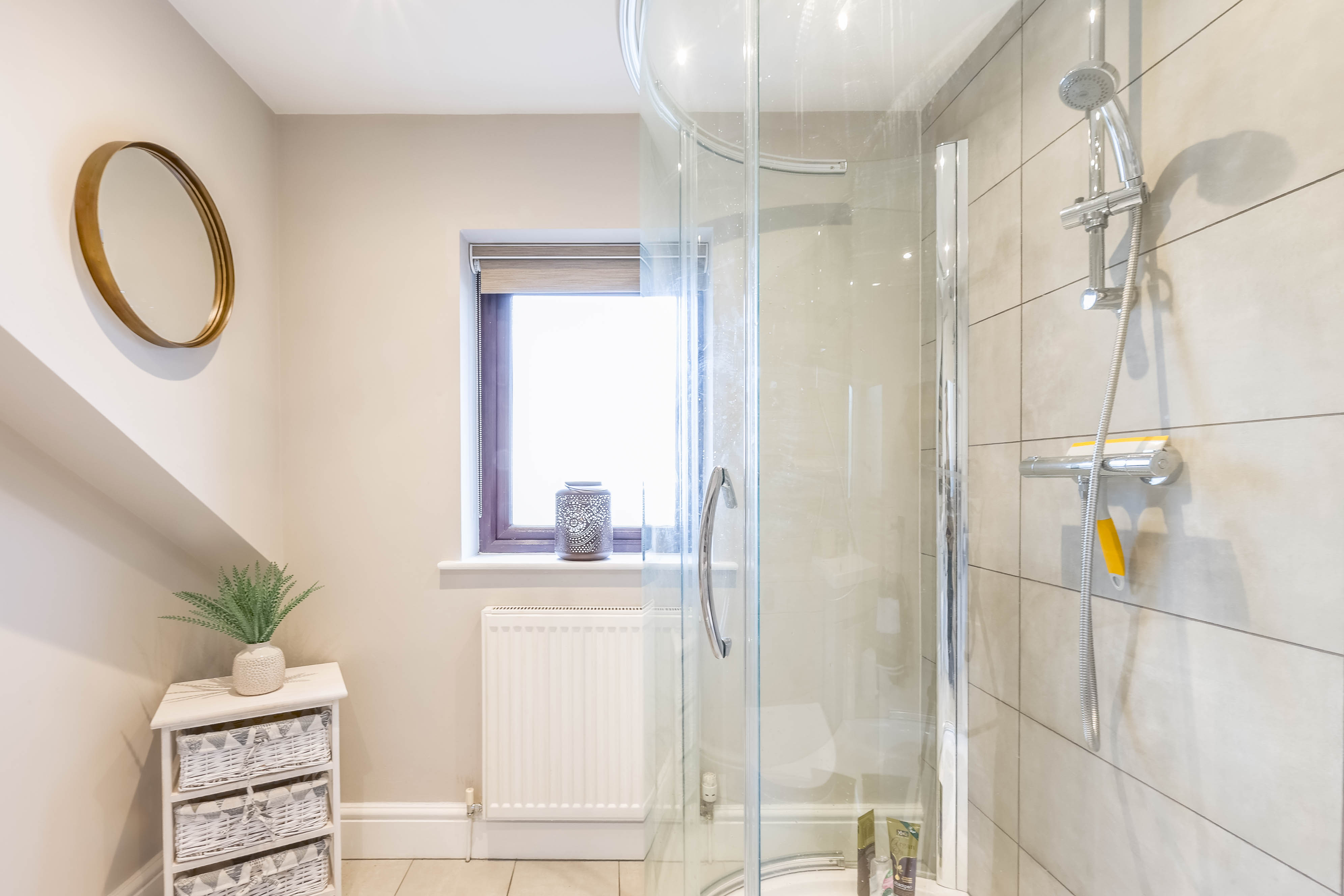 - Two double bedrooms, including a main bedroom with en suite shower room and built in storage