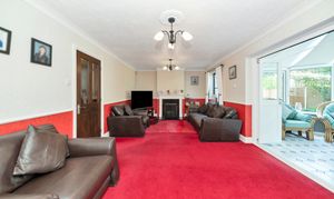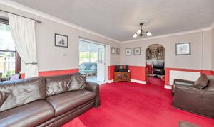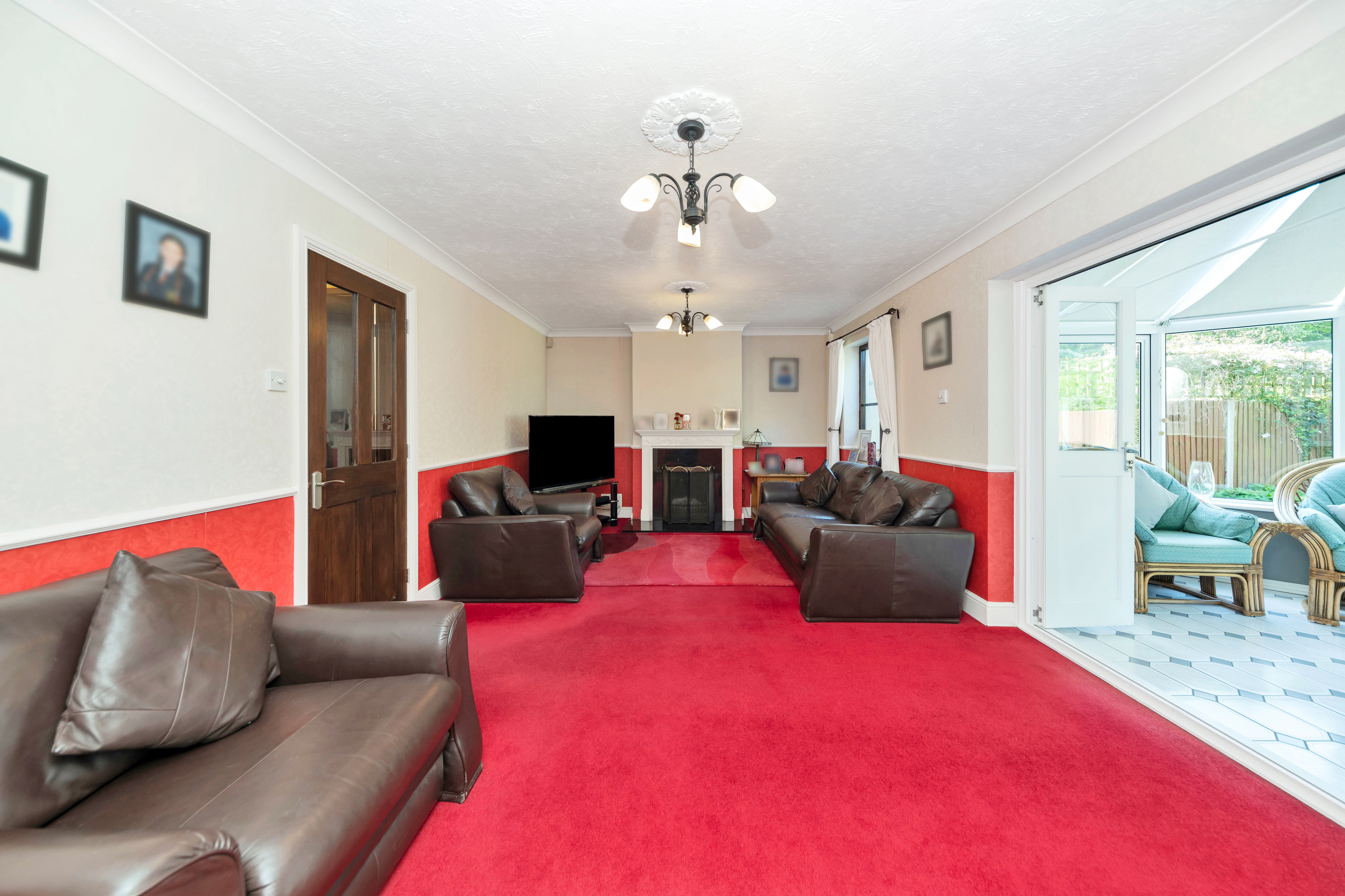 The dining room, adjacent to the kitchen, is nicely sized and bright, benefiting from a window to a front aspect, carpets, pendant lighting and room for furniture. The lounge is incredibly spacious, enjoying a feature fireplace, carpets, pendant lighting, windows and bi-fold doors to the rear and to the conservatory, and ample space for a variety of lounge and storage furniture. The conservatory offers further versatile reception space and boasts a fantastic garden outlook, with a pitched roof, tiled flooring and room for furniture.