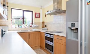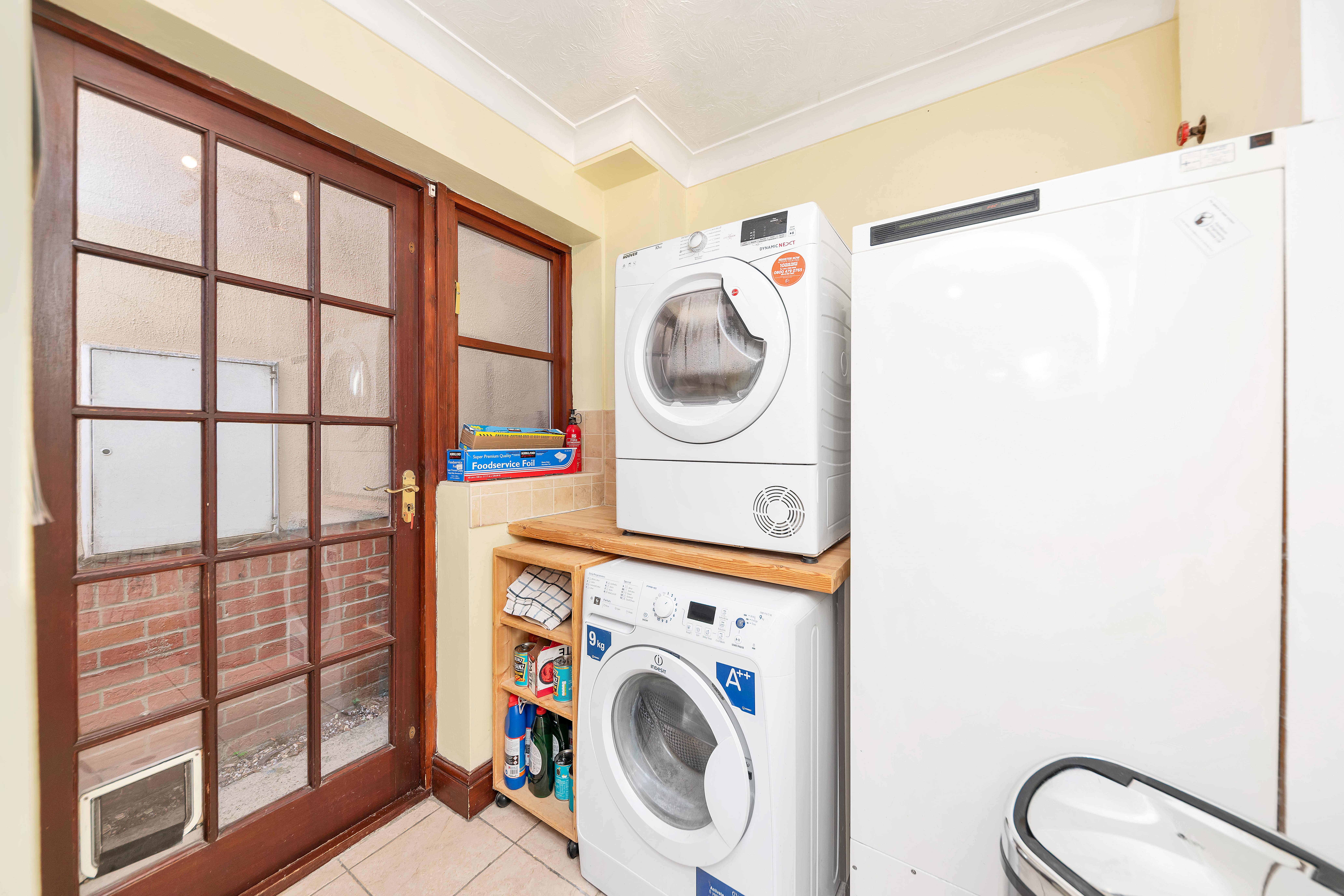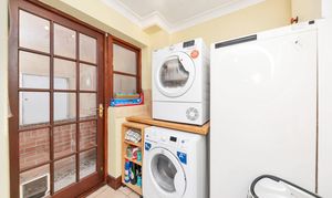 The kitchen is a very good size, enjoying a window to a front aspect, a range of base and wall units, composite worktops, spot lighting, tiled flooring and splashbacks, an integrated double oven, hob and extractor hood, and space for an American fridge/freezer and other small kitchen appliances. The utility room provides further storage, access to the side of the property and space for large laundry appliances.