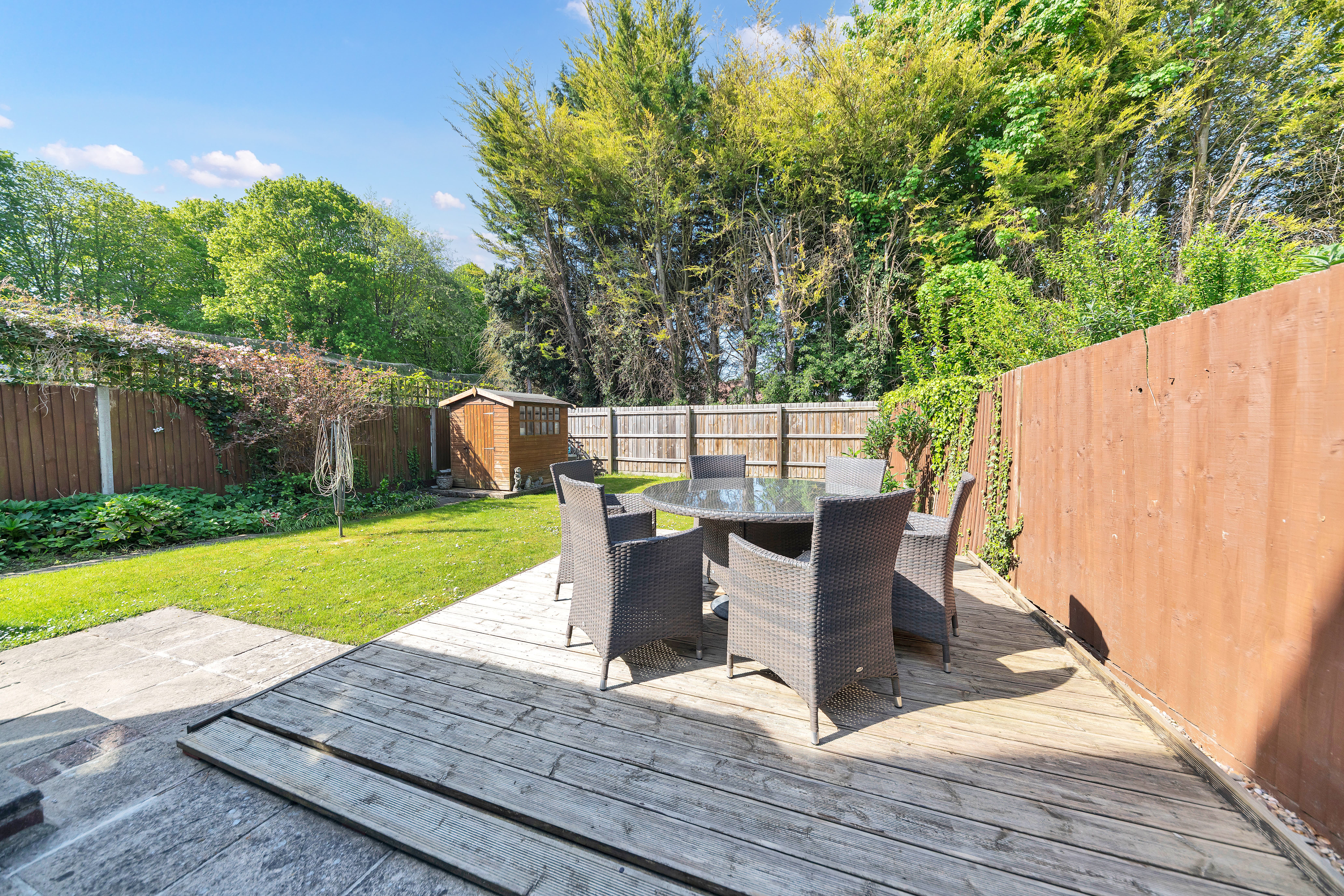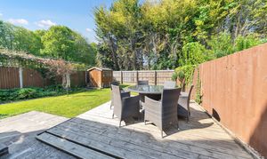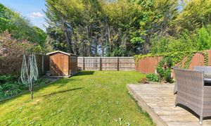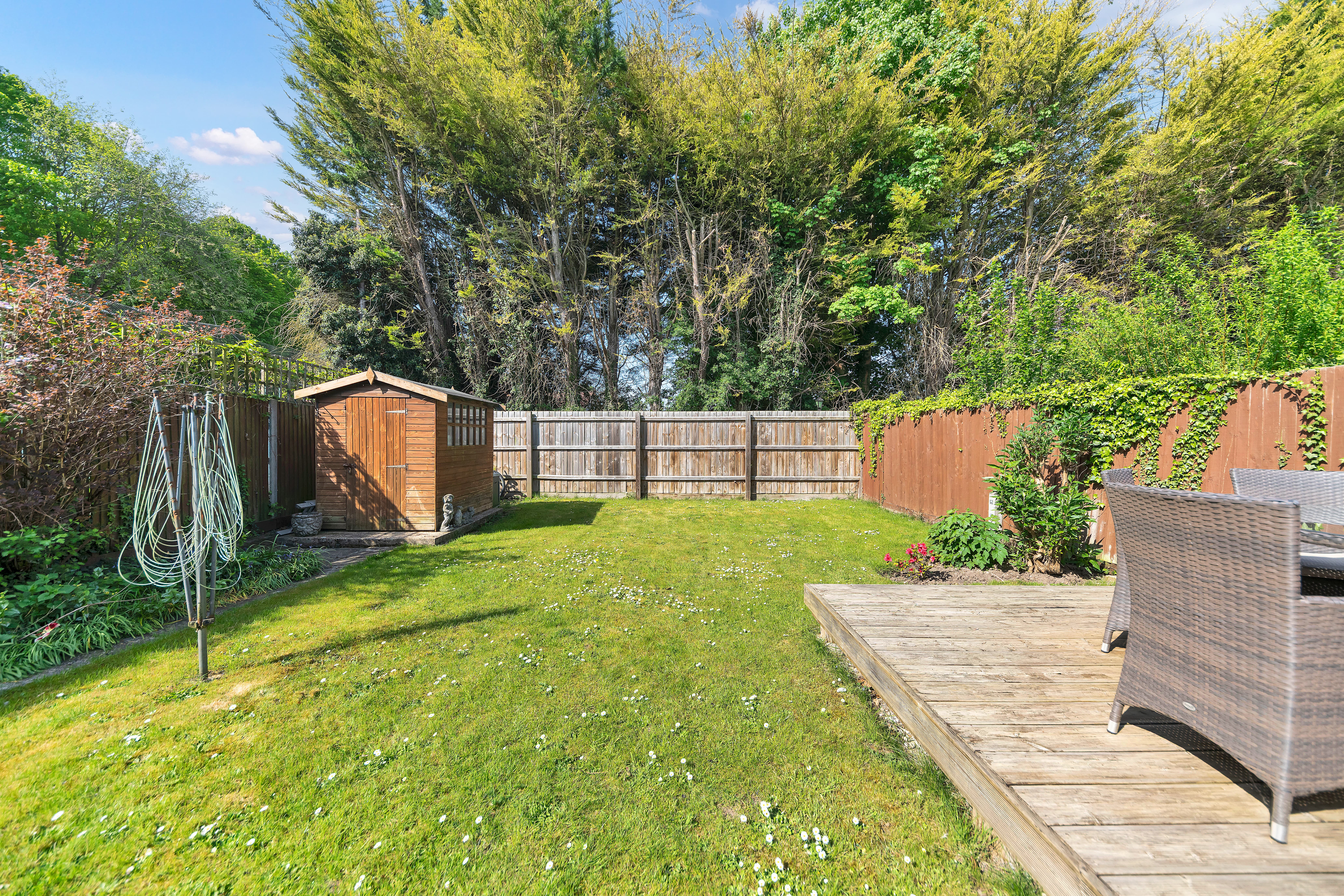 Outside, to the rear, the garden is an excellent size, fully enclosed by fencing and offering a lovely sunny spot to sit and relax during the warmer months. It is laid mainly to lawn, with paved patio and decking by the house, providing space for garden furniture, cooking meals al fresco and entertaining guests. There are established borders of colourful flowers and shrubs, space for potted plants, access to a shed, lovely tree views to the rear, and plenty of scope for new owners to put their own stamp on things.