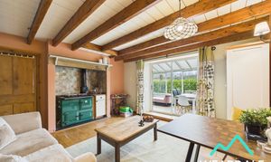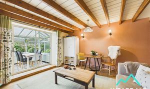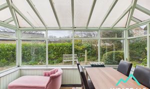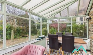 - Positioned to the rear of the property, on the Southern side, accessed from the sitting room and providing external access to the rear garden via a wooden door with clear pane - Triple aspect, with wooden framed windows to the Eastern, Western, and Southern sides - Tiled flooring - Exposed stone wall to the Northern side - Two wall mounted light fittings - Radiator - Ample space for lounge of dining furniture