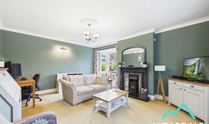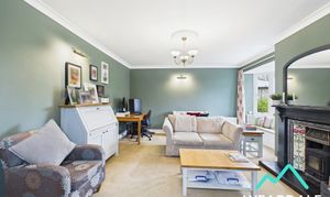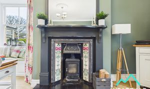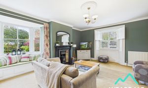 - Positioned to the front of the property and accessed from the hallway - Spacious lounge area - Dual aspect, with a double-glazed sash window with wooden window shutters to the Western aspect, looking over the front of the property. There is a further double-glazed sash window with wooden window seat to the Southern aspect, looking over the rear garden - Carpeted - Wood burner set on a tiled hearth, with a tiled surround and wooden mantle - Central ceiling light fitting and two wall mounted light fittings - Ample space for lounge furniture